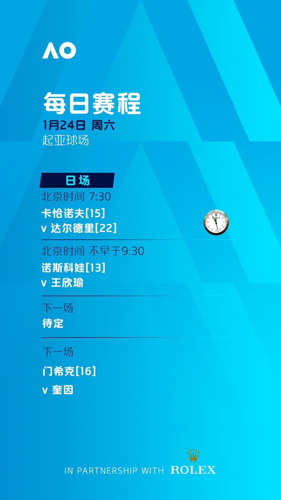 2026澳网第7比赛日,辛纳、德约科维奇、凯斯、大坂直美一众名将亮相中心场,中国选手王欣瑜将向个人澳网女单16强席位发起冲击。罗德·拉沃尔球场、玛格丽特·考特球场将从北京时间7:30开打,其余球场将分别从北京时间7:00和7:30开打。详细赛程: 编辑 胡森铭 订阅后可查看全文(剩余80%)