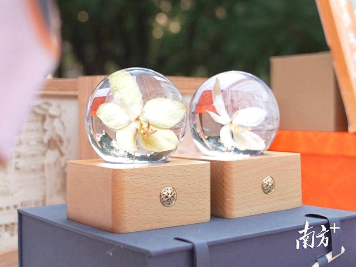 “花间小筑”文创摊位主理人林薇边招呼客人扫码边笑:“蝴蝶兰做成小夜灯,又好看,又能用,还能当伴手礼。”她说,一天能卖出十多个。