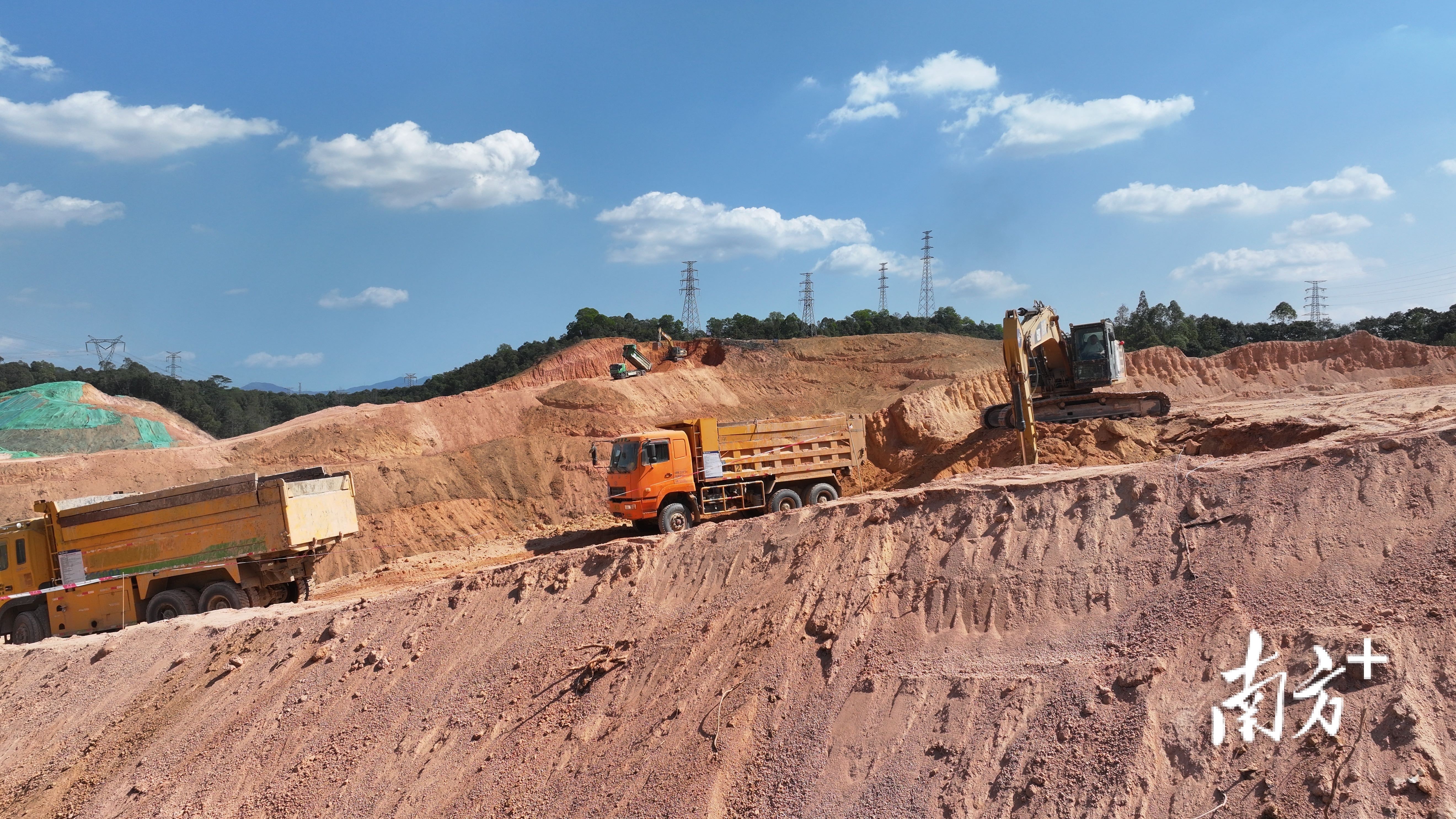 藏粤直流工程深中换流站施工现场,挖掘机轰鸣作业,自卸车往来穿梭,项目正全力推进“三通一平”工程的土方开挖,为后续建设筑牢坚实基础。李品 摄