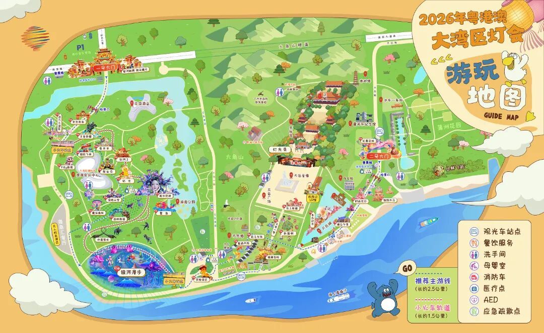 1号大门➜活力大湾区➜IP灯组矩阵➜南沙花神➜鳌鱼➜森林物语➜银河漫步➜共绘湾区➜福满金枝➜李白对月➜难忘今宵➜2号大门