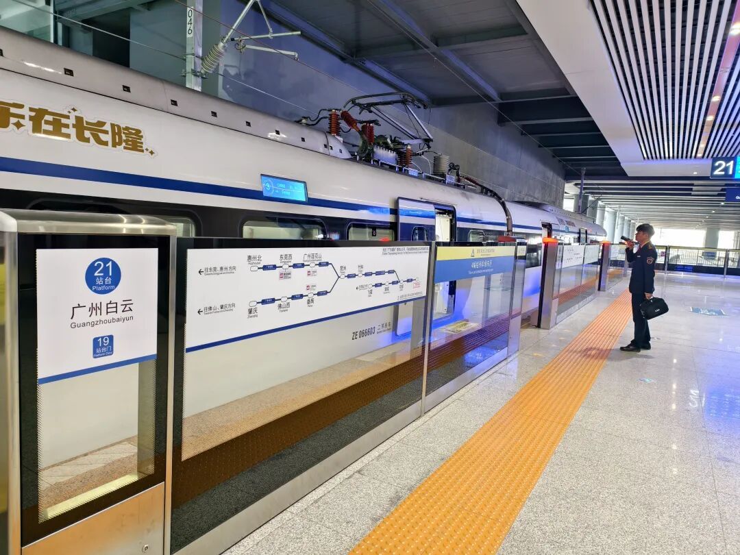 记者看到,在广州白云站,旅客可通过便捷通道“无需二次安检”快速换乘国铁,同时可通过“单向免安检”换乘广州地铁十二号线,站外换乘广州地铁八号线,实现“城际、国铁、地铁”的有效衔接。