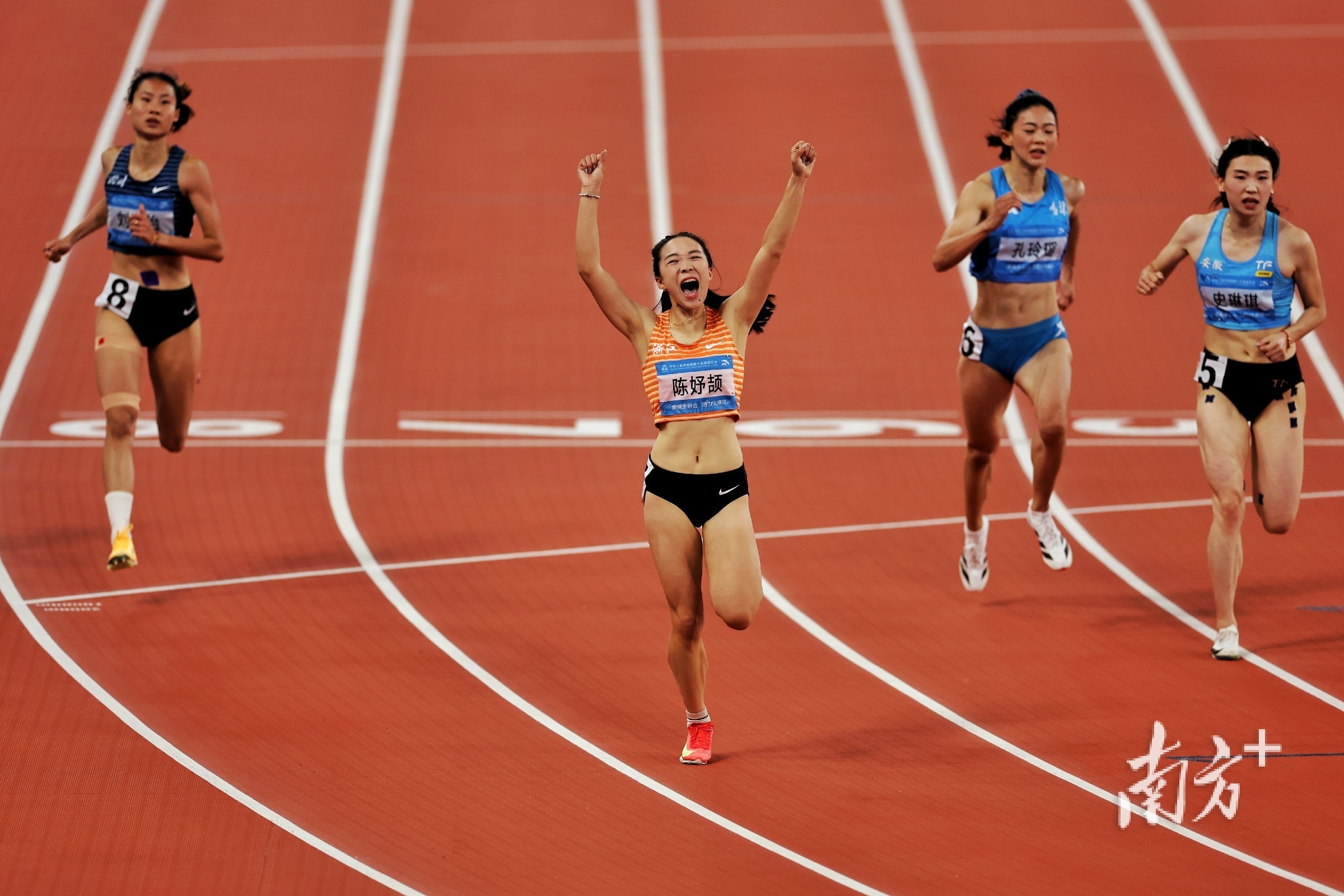 11月17日晚,十五运会田径项目女子100米决赛,浙江队陈妤颉以11秒10的成绩获得冠军。 南方+记者 石磊 摄