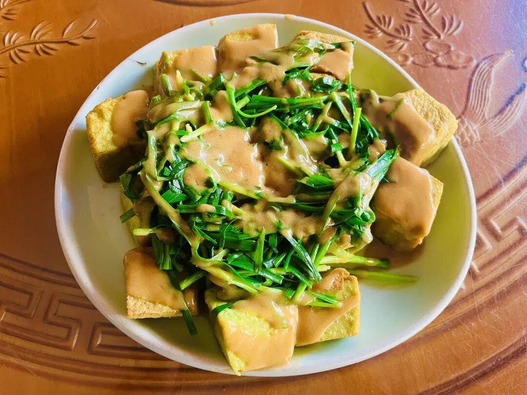 2017年,手艺传承人冯师傅在坚守祖辈技艺的基础上大胆创新,将碧绿的韭菜汁、金黄的鸡蛋汁融入其中,创制出颜色清新、口感滑嫩、味道鲜香的“花生韭菜豆腐”,让这道老味道焕发出全新的生命力,吸引了众多食客慕名前来。