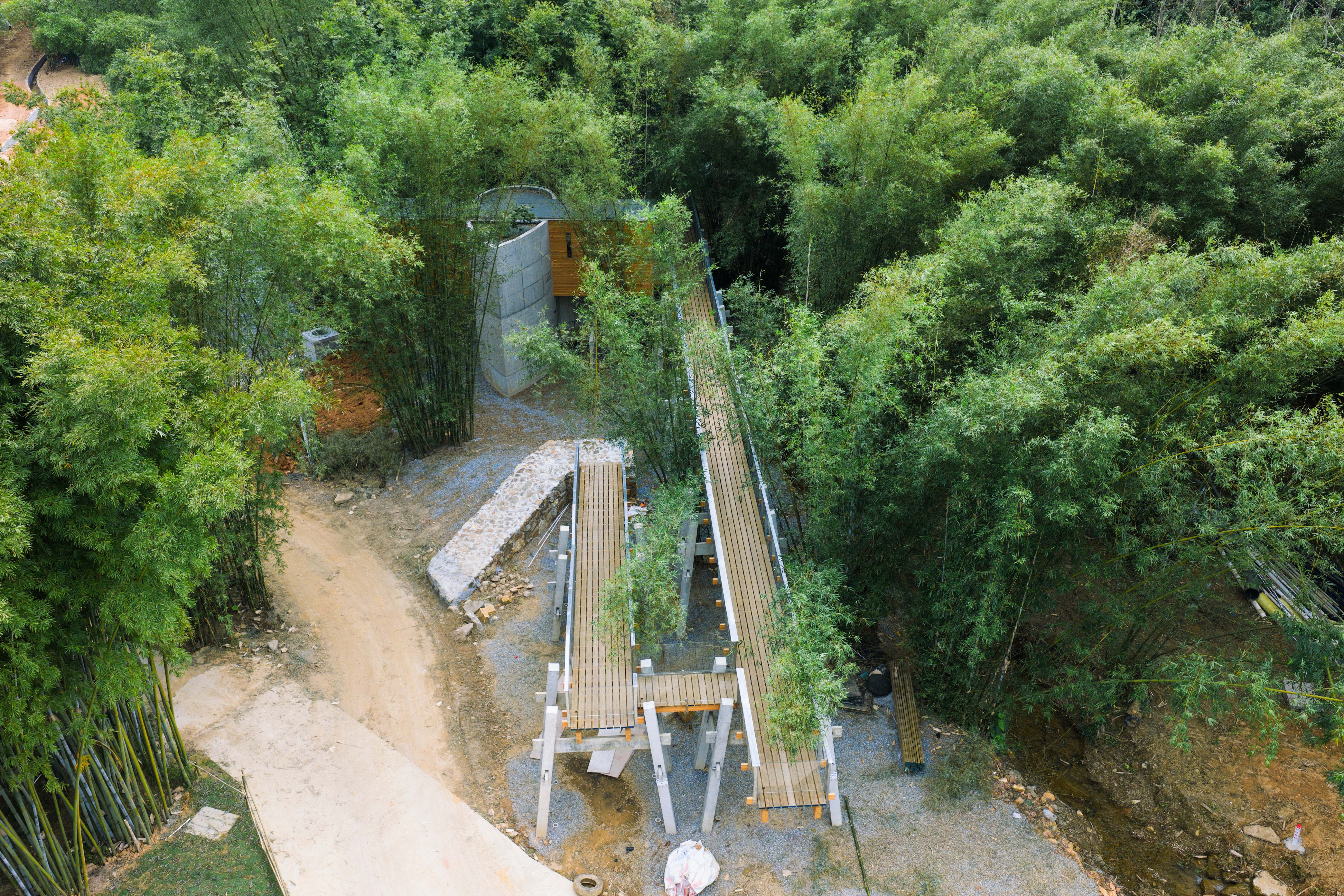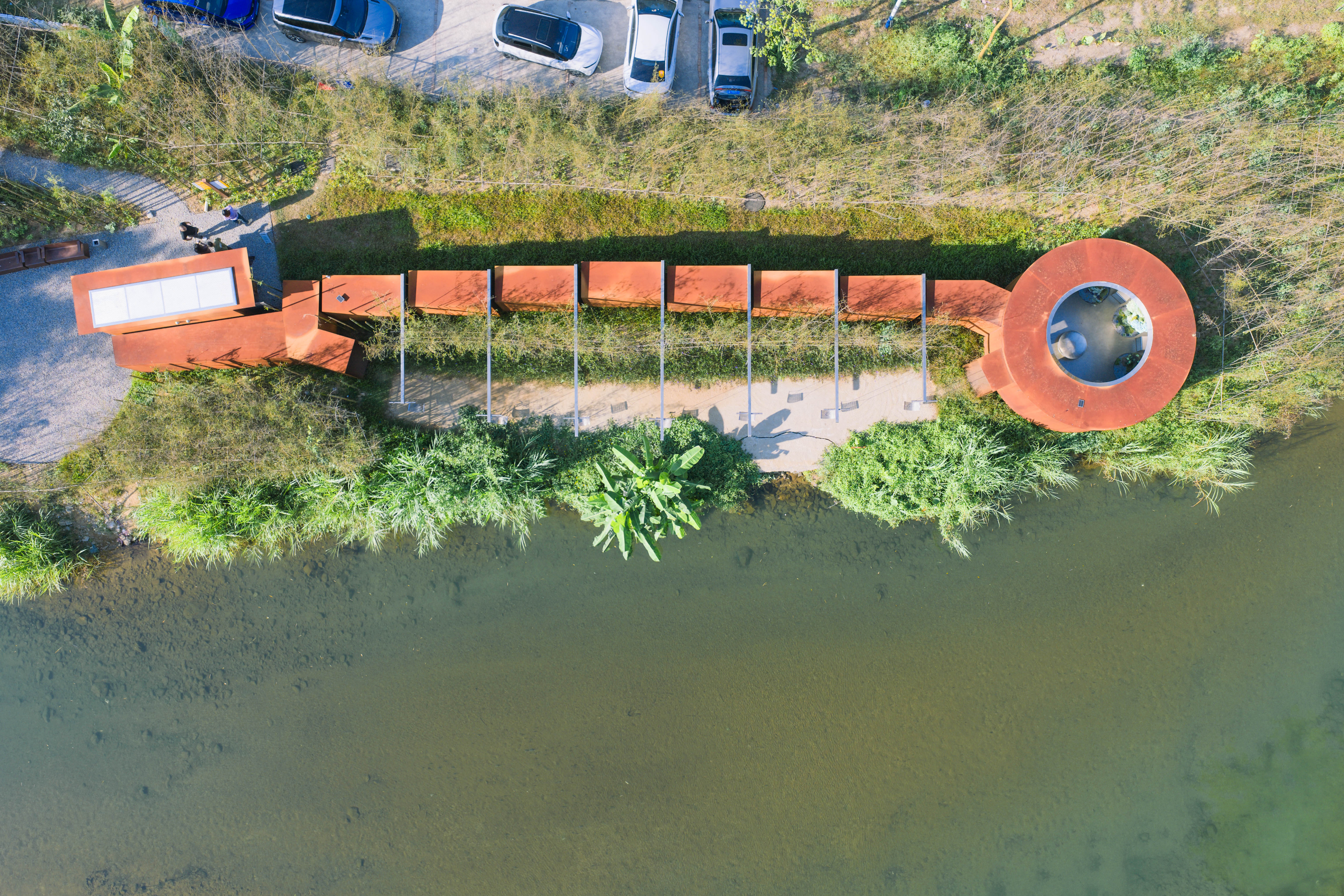 设计上贴合地形设计单车路径,观景平台像手掌一样伸入树林,可以欣赏最美的水库景色。
