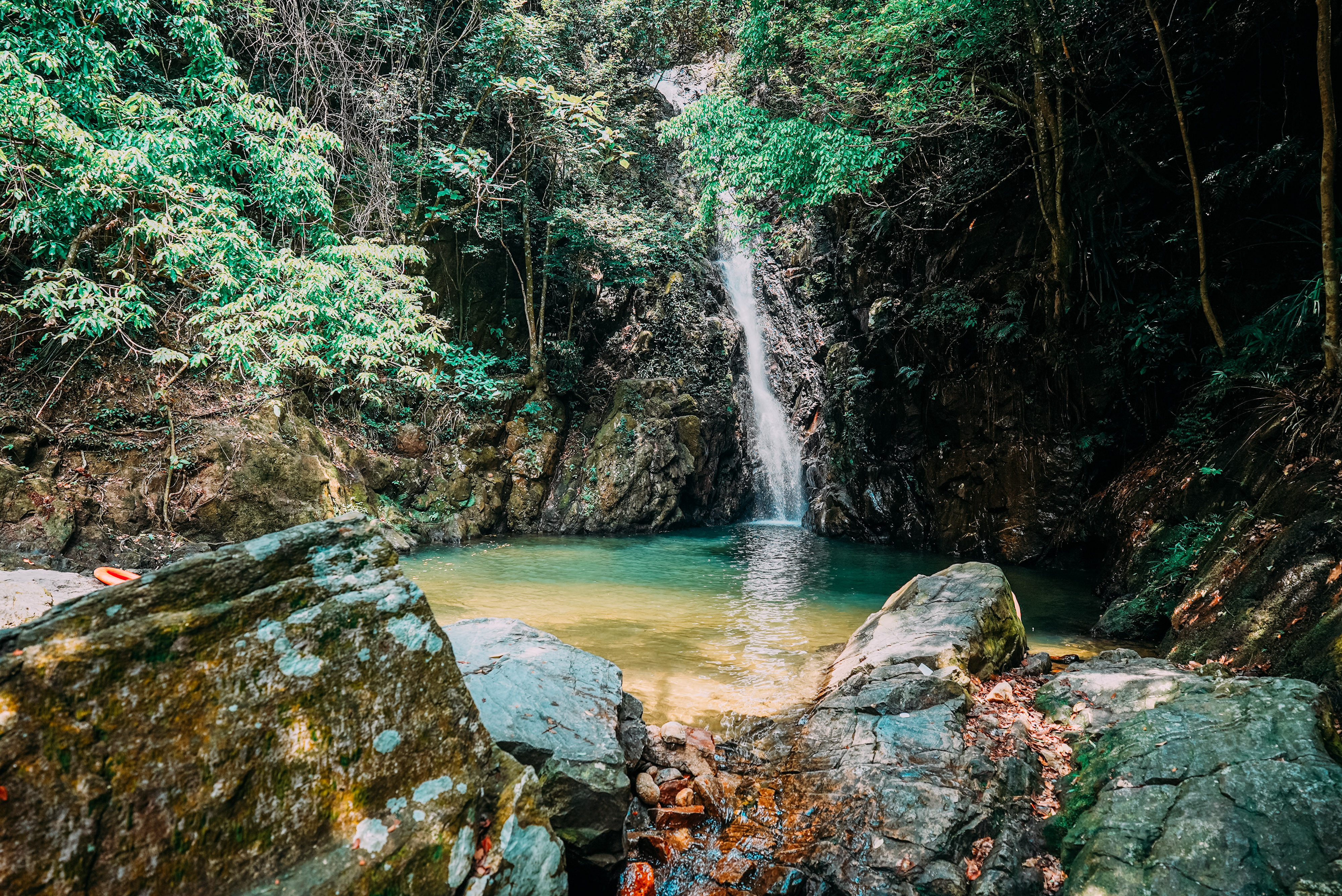 低矮的天幕给溪岸撑起了一片阴凉,约上朋友一起溯溪玩水,尽享一段慵懒时光。