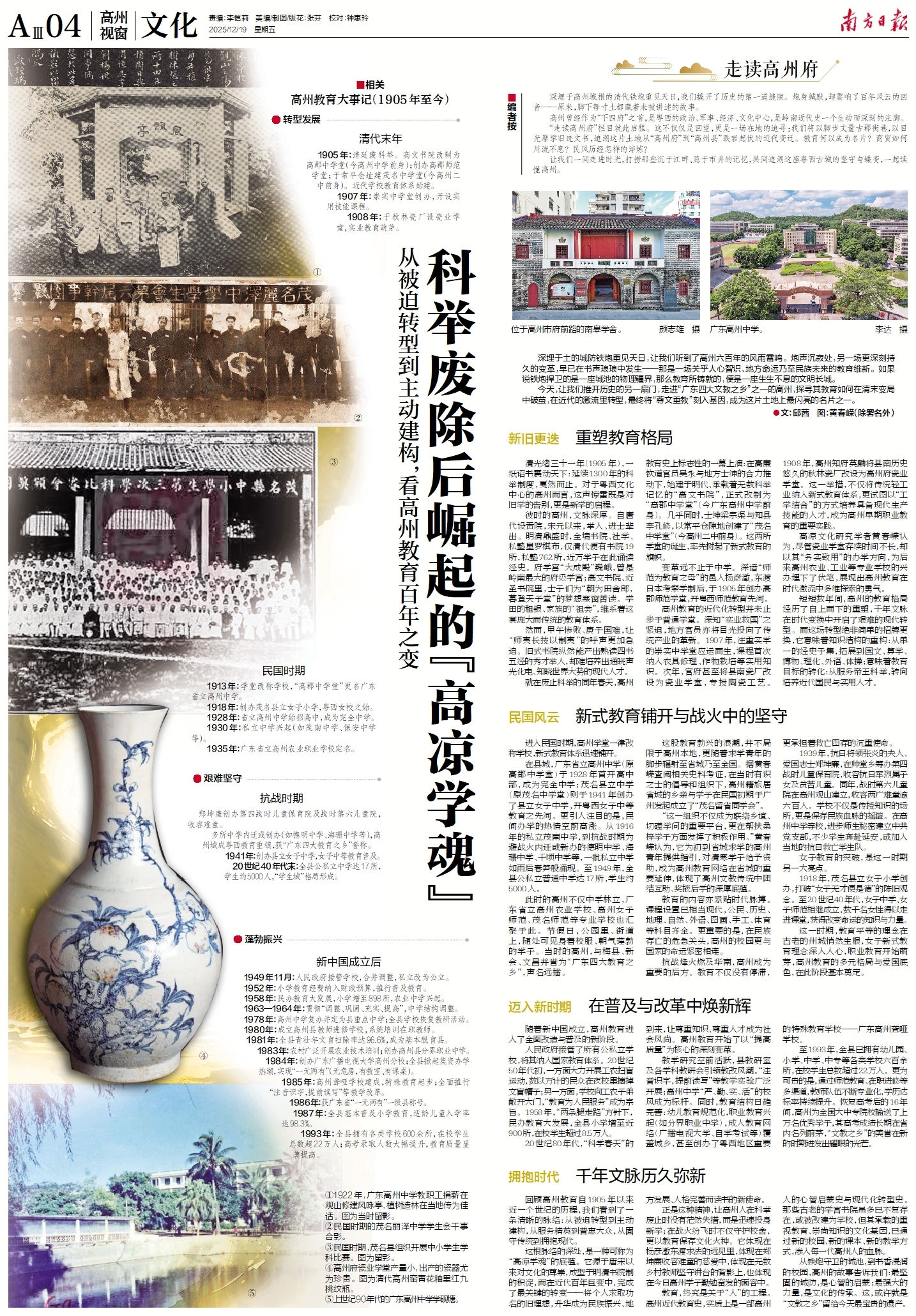 这一时期,教育平等的理念在古老的州城悄然生根,女子新式教育理念深入人心,职业教育开始萌芽,高州教育的多元格局与爱国底色,在此阶段基本奠定。