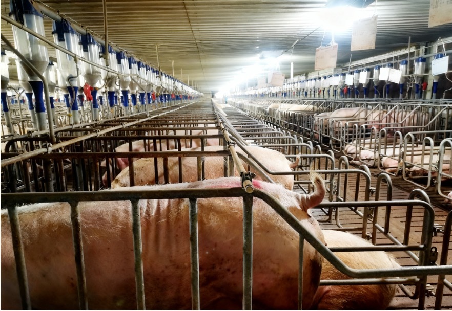 广东大家食品有限公司采用美式大栋舍养殖模式,集成智能环控、饲喂与监控系统,构建全程可溯源的数字化管理体系。通过三大技术实现生态智能化养殖:一是引进PIC优质种猪,使商品猪生长速度提升10%,料肉比降至2.4;二是建立全方位疫病防控体系,配备自建实验室和智能洗消中心,实现重大疫病2小时快速检测,免疫合格率持续保持98%以上,年节约成本500万元;三是应用物联网智能系统,实现环境调控与饲喂全程自动化,人工成本降低20%,母猪PSY提升至29头。配套“UASB+两级AO”粪污处理工艺,实现废弃物100%资源化利用,打造出高效、安全、环保的现代养殖新范式。