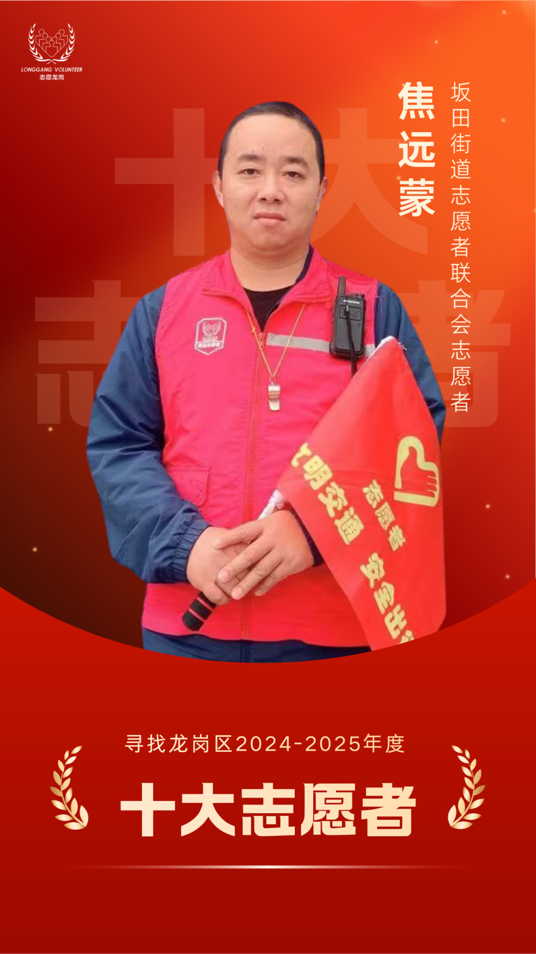 他是马路上的安全守护者,在坂田地铁站路口长期疏导交通;是社区暖心使者,曾帮助失散十四年的流浪者与家人团聚;更是服务创新者,作为坂田志愿者联合会礼遇项目组组长,开创性地构建了志愿服务激励机制,带领团队累计整合了124家爱心商家资源;还曾获深圳市“五星级志愿者”荣誉称号,用行动诠释奉献精神。