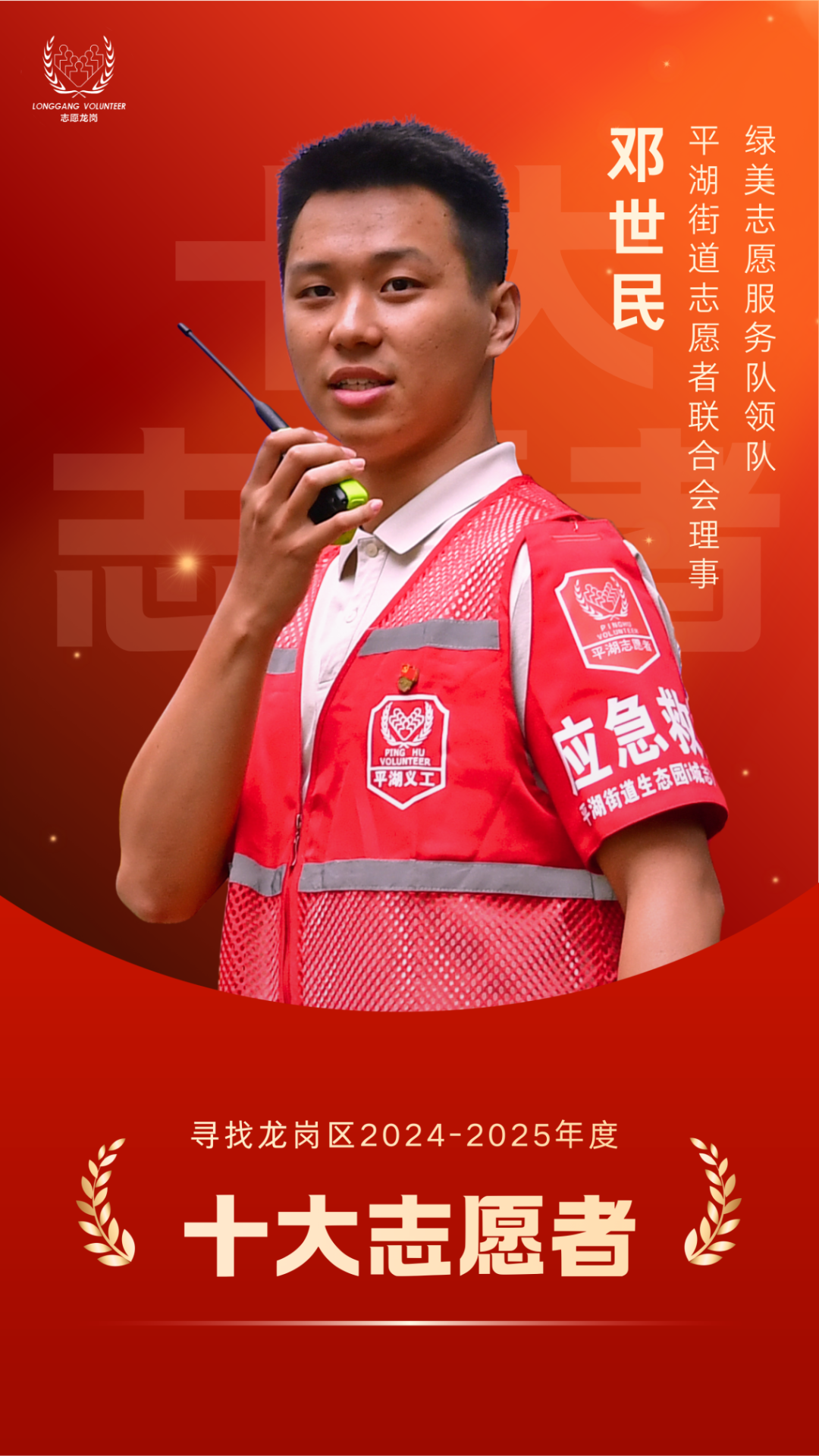 他是“退伍不褪色”的“红星”战士,以党员和退役老兵的双重身份,扎根社区开展志愿服务已逾二十年。在应急救援一线,他始终勇当先锋,2024年被评为市级退役军人红星应急救援队优秀队员。他连续15年担任学校家委会成员,并积极参与龙岗区退役军人服务中心“老班长工作室”和葵涌救援突击队的建设工作,以实际行动生动诠释了“若有战,召必回”的军人誓言与无私奉献的志愿精神。