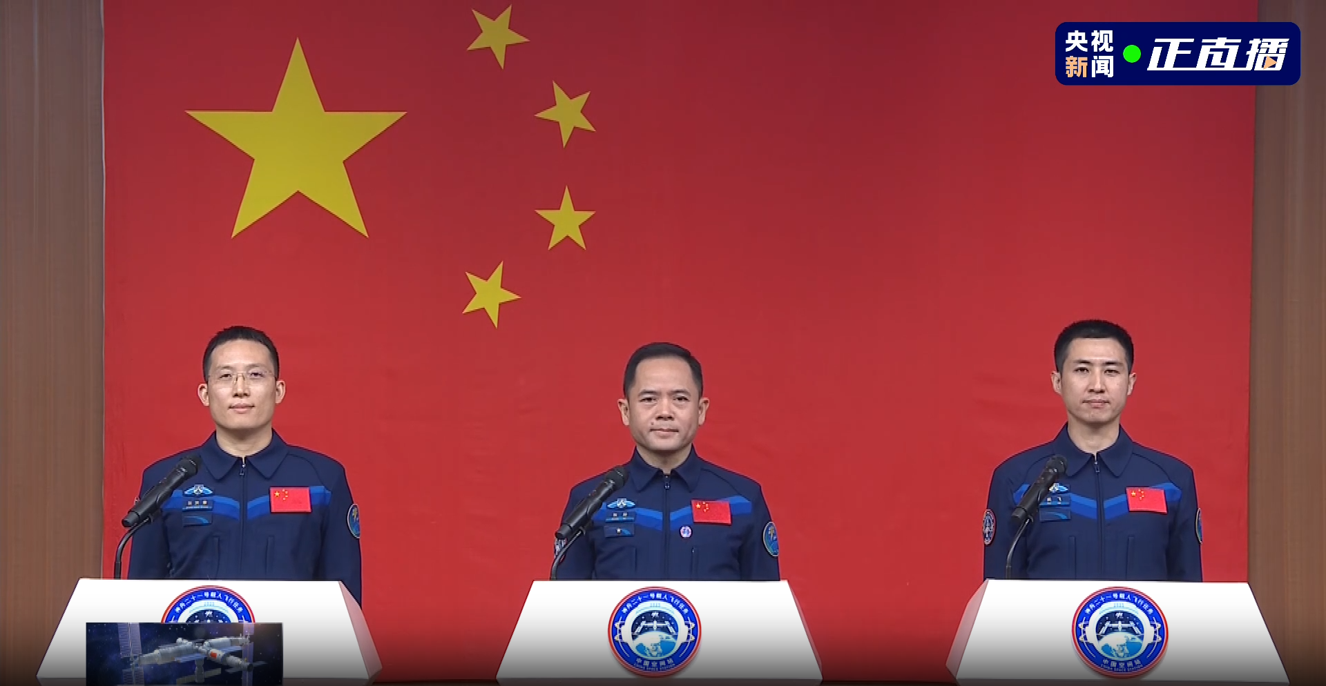 今天上午,神舟二十一号航天员乘组3名航天员张陆、武飞、张洪章在酒泉卫星发射中心问天阁与中外媒体记者集体见面。