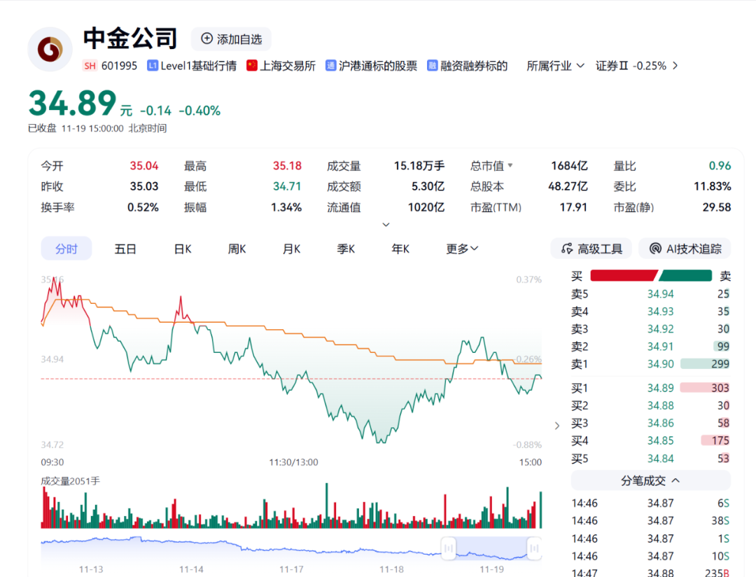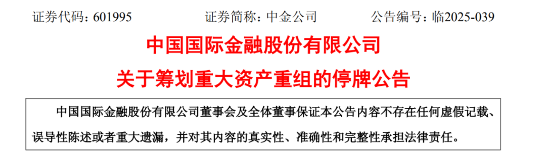 中金公司称,鉴于上述事项存在重大不确定性,为保证公平信息披露,维护投资者利益,避免造成公司股价异常波动,根据上海证券交易所的相关规定,经公司申请,公司A股股票将于2025年11月20日(星期四)开市时起开始停牌。
