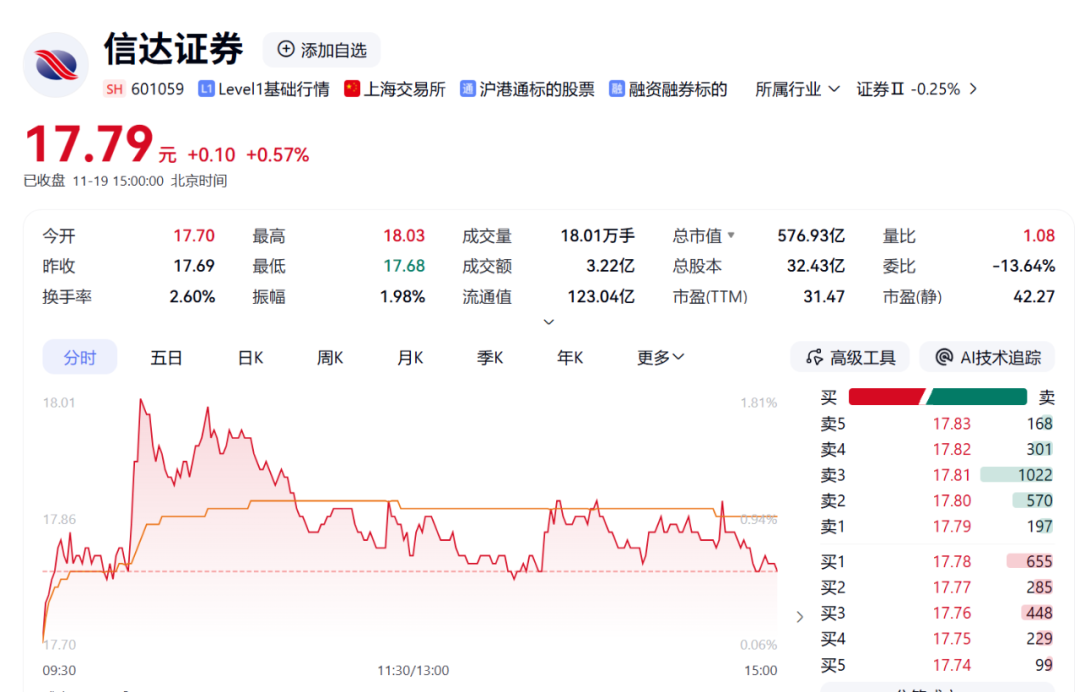 信达证券实际控制人也是中央汇金投资有限责任公司,公司A股最新市值达577亿元。