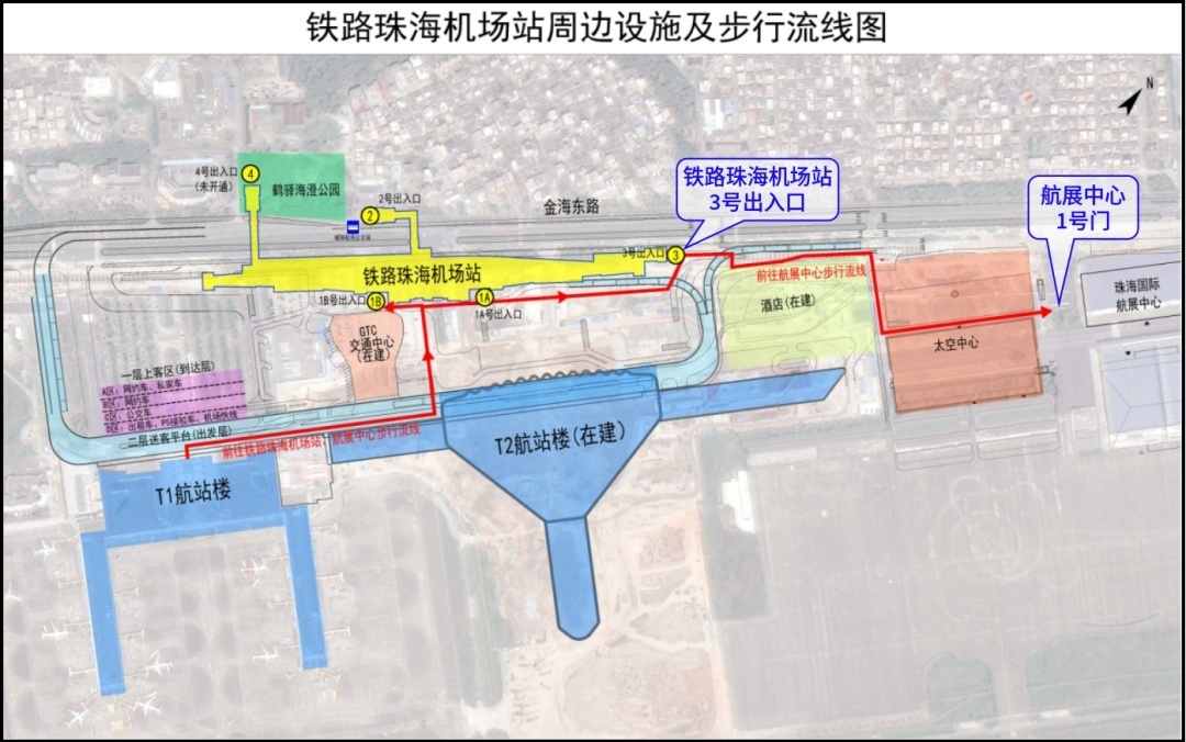 乘坐广珠城际的观众请在“珠海站”换乘,可在“珠海站”B出口专用通道便捷换乘珠机城际前往“珠海机场站”。抵达珠海机场站从3号口出站,步行300米到达航展中心1号门。