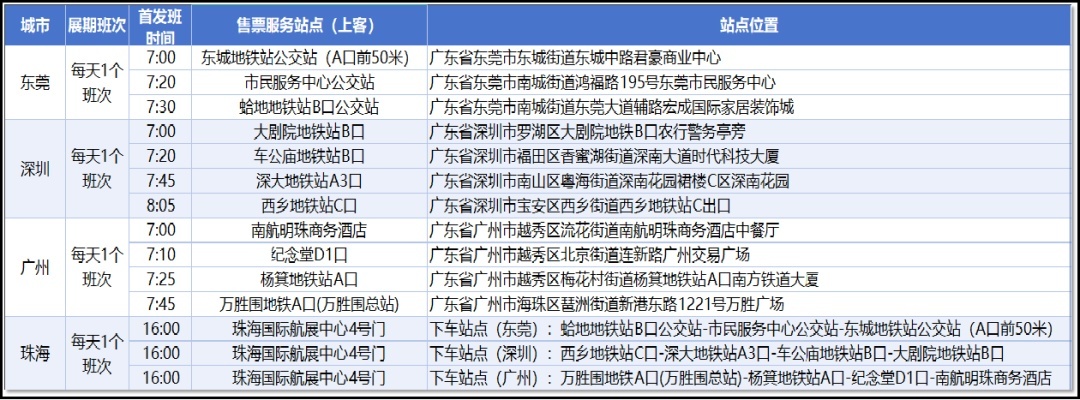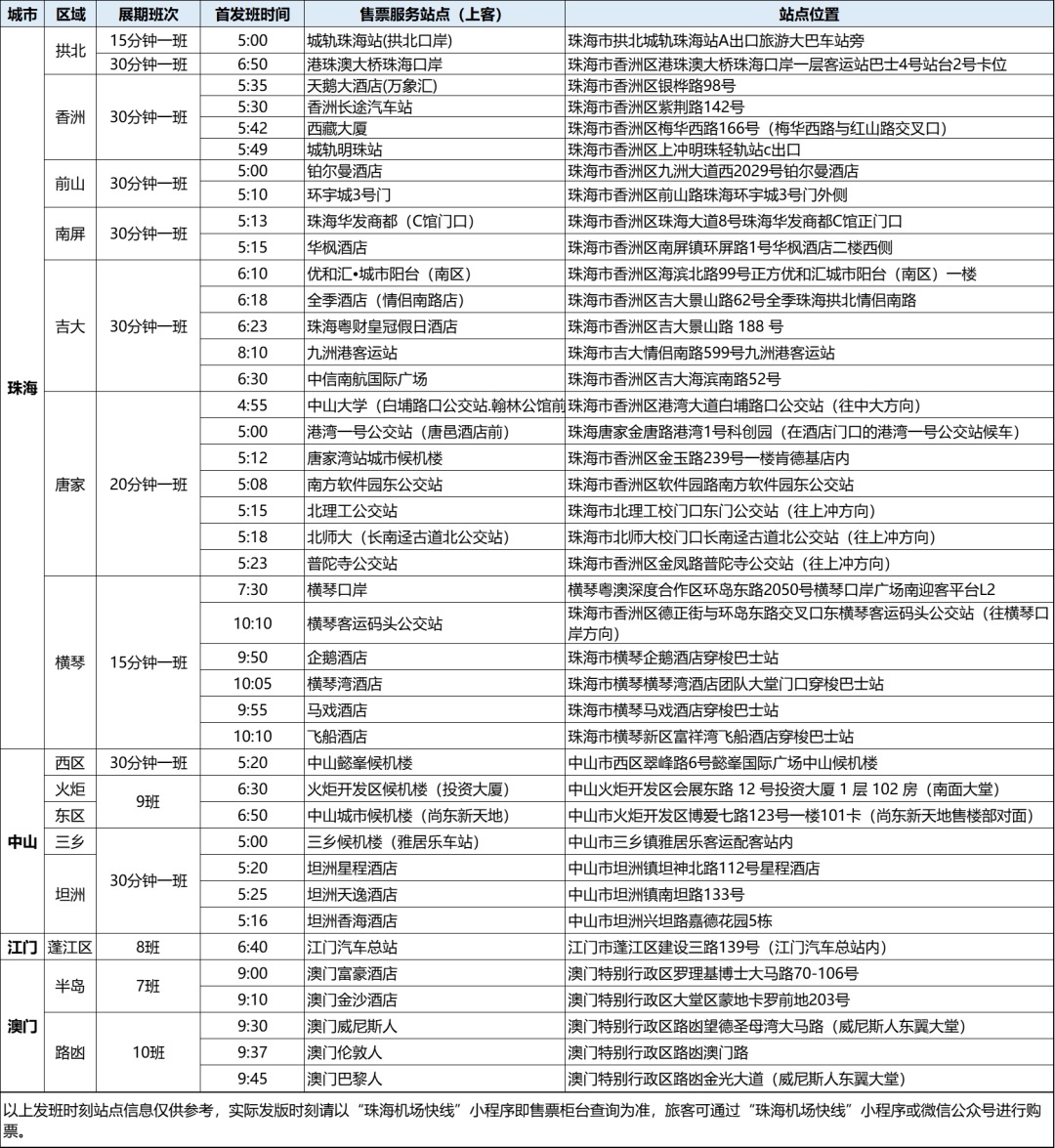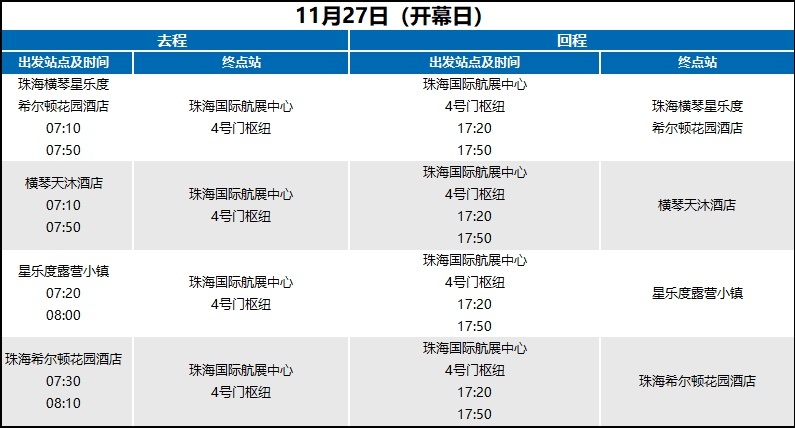 通过“小达巴士”微信服务号或小程序预约购票,可直达航展中心4号门。跨市专线时刻表如下: