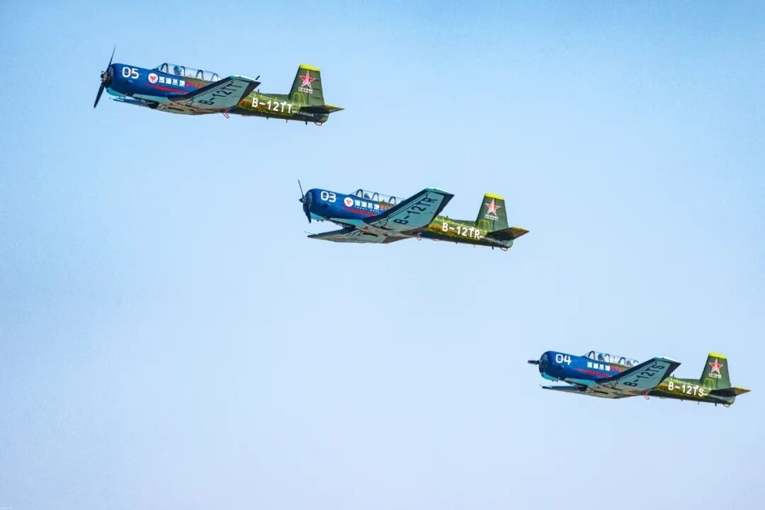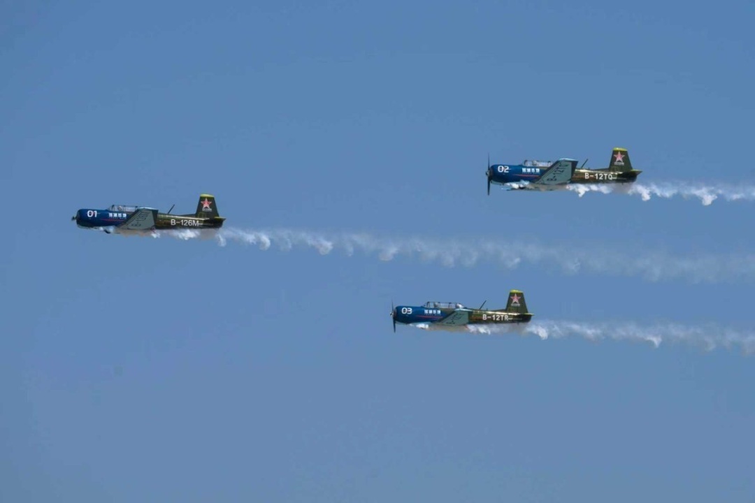 飞行表演队使用的民用初教-6飞机,是国内唯一一款可收放起落架,可进行倒飞等特技飞行的小型通用飞机。该机型拥有非常优异的巡航性能和机动性能,能在极低的速度下安全起飞、降落。