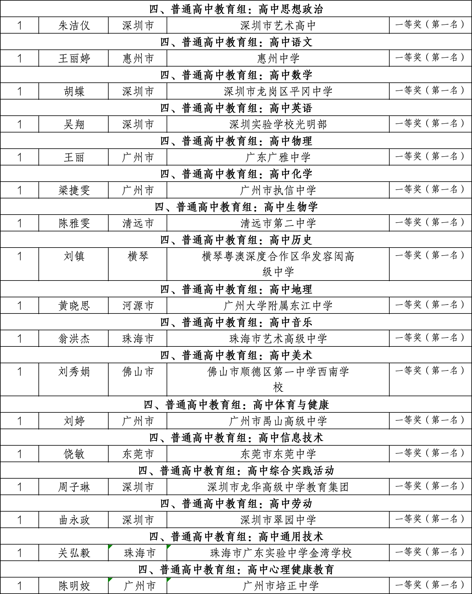 11月27日,广东省教育厅发布《第五届广东省中小学青年教师教学能力大赛决赛获奖名单公示》,公布本届大赛6个组别57个学科(专业)的拟获奖名单(详见附件),77人晋级第五届广东省中小学青年教师教学能力大赛总决赛。