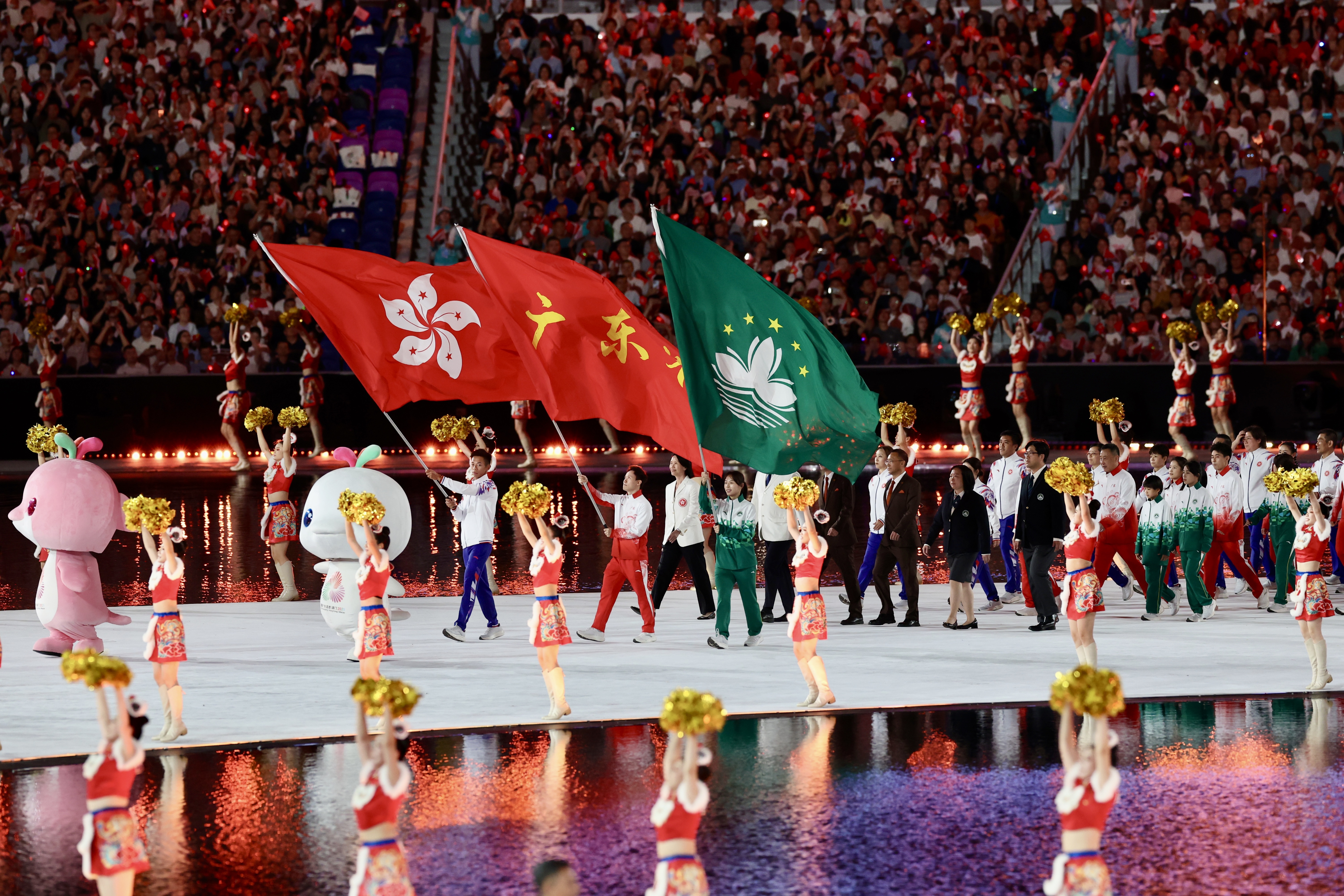 这是粤港澳三地首次联合承办全国运动会,习近平总书记出席开幕式并宣布运动会开幕。本届全运会是“一国两制”在体育领域的创新实践,意义重大,影响深远。境内外共有366家媒体超3300名记者参与采访报道。开闭幕式直播全国累计收视近2亿人次,充分展现岭南风韵和科技实力。三地歌手同唱十五运会会歌、三地同传十五运会火炬、三地运动员开闭幕式同时进场、三地火炬手共同点燃主火炬、全场共唱歌曲《中国人》等感人瞬间,迅速在网络刷屏霸榜。全运会跨境自行车、跨境马拉松等重要赛事的“无感通关”,充分展现粤港澳大湾区“硬联通”“软联通”“心联通”的建设成就,凸显了十五运会在丰富“一国两制”实践、彰显制度优势、深化粤港澳合作、推动大湾区高质量发展、激发港澳同胞爱国热情、推动港澳更好融入国家发展大局等方面的重要作用。