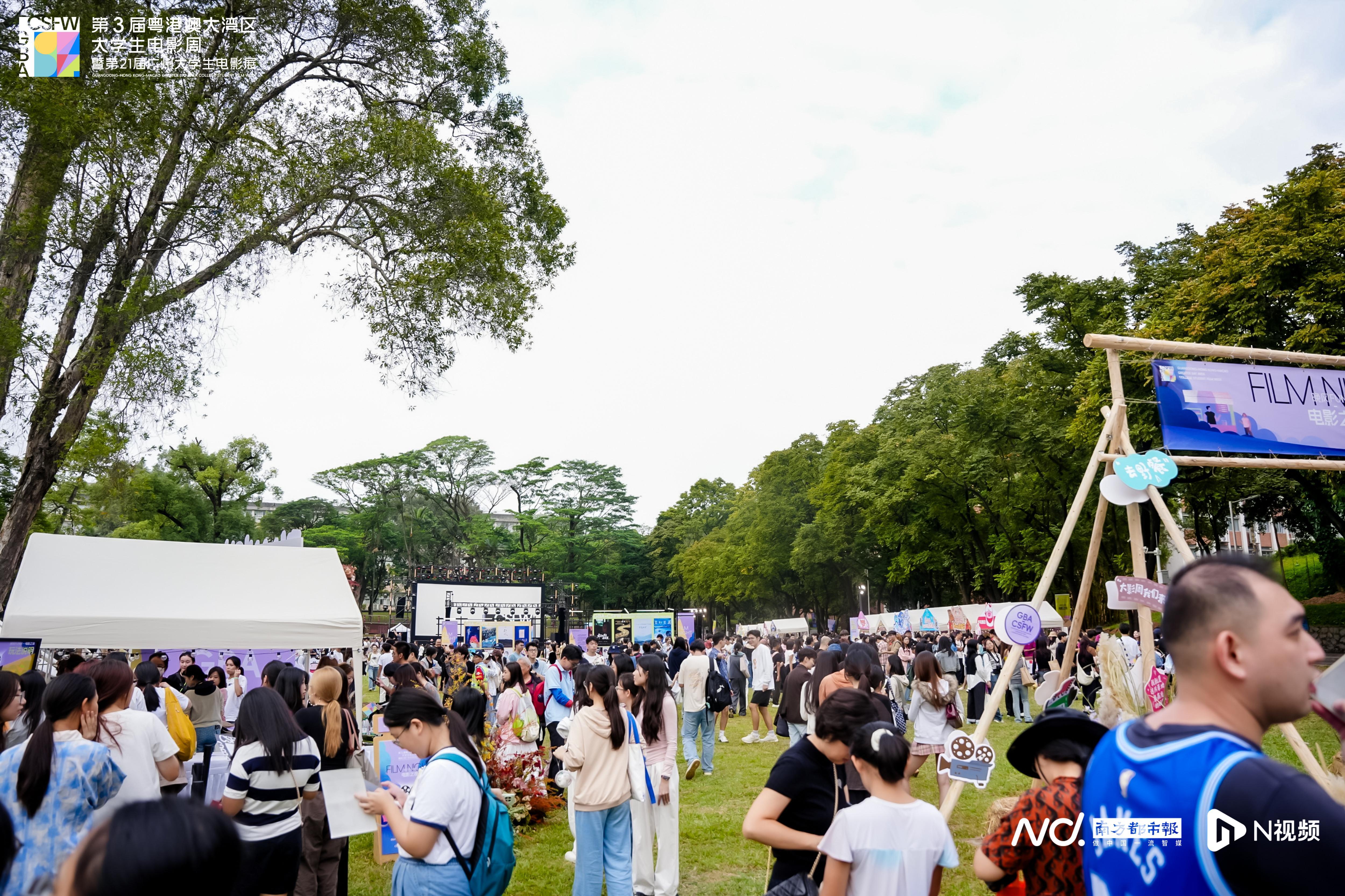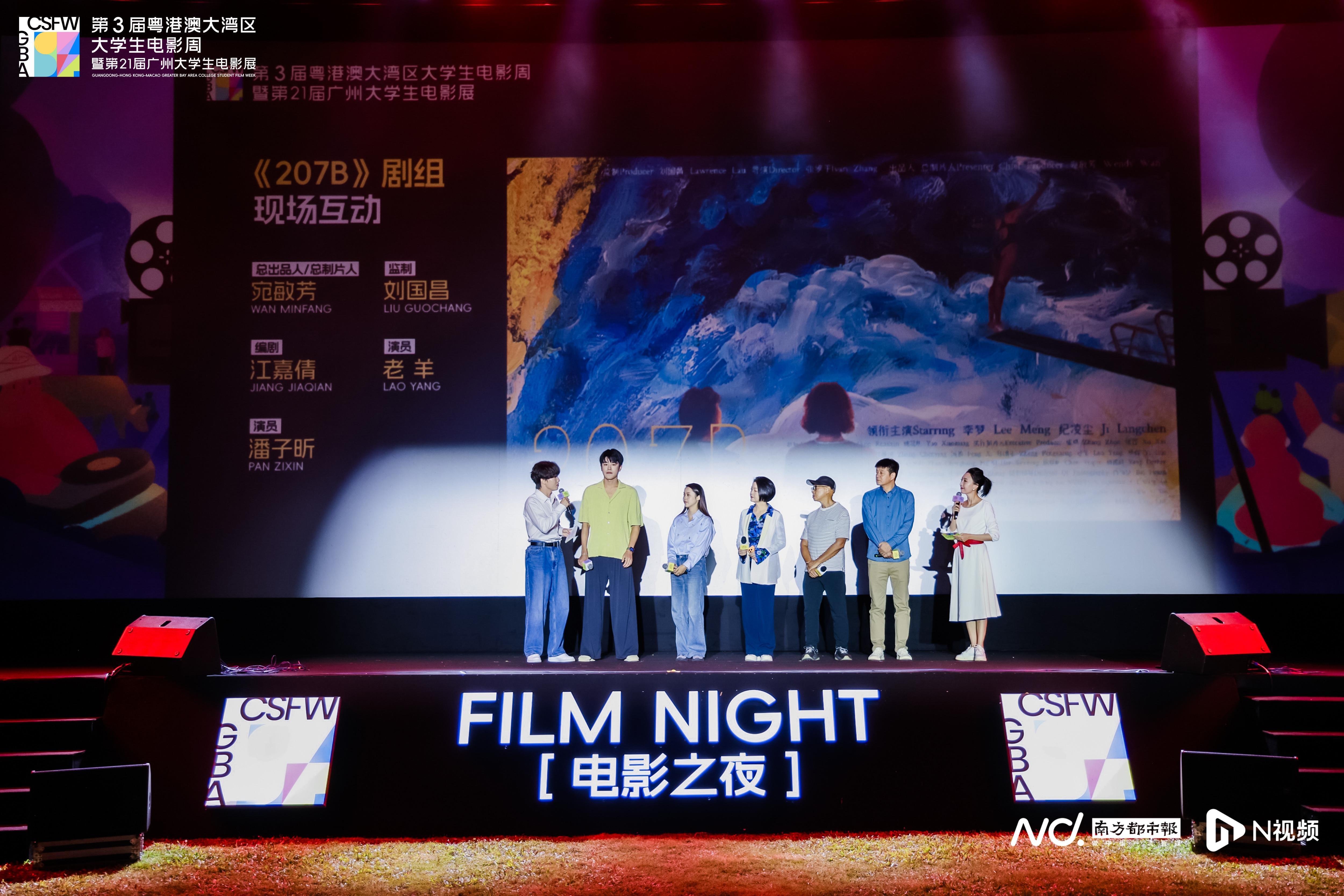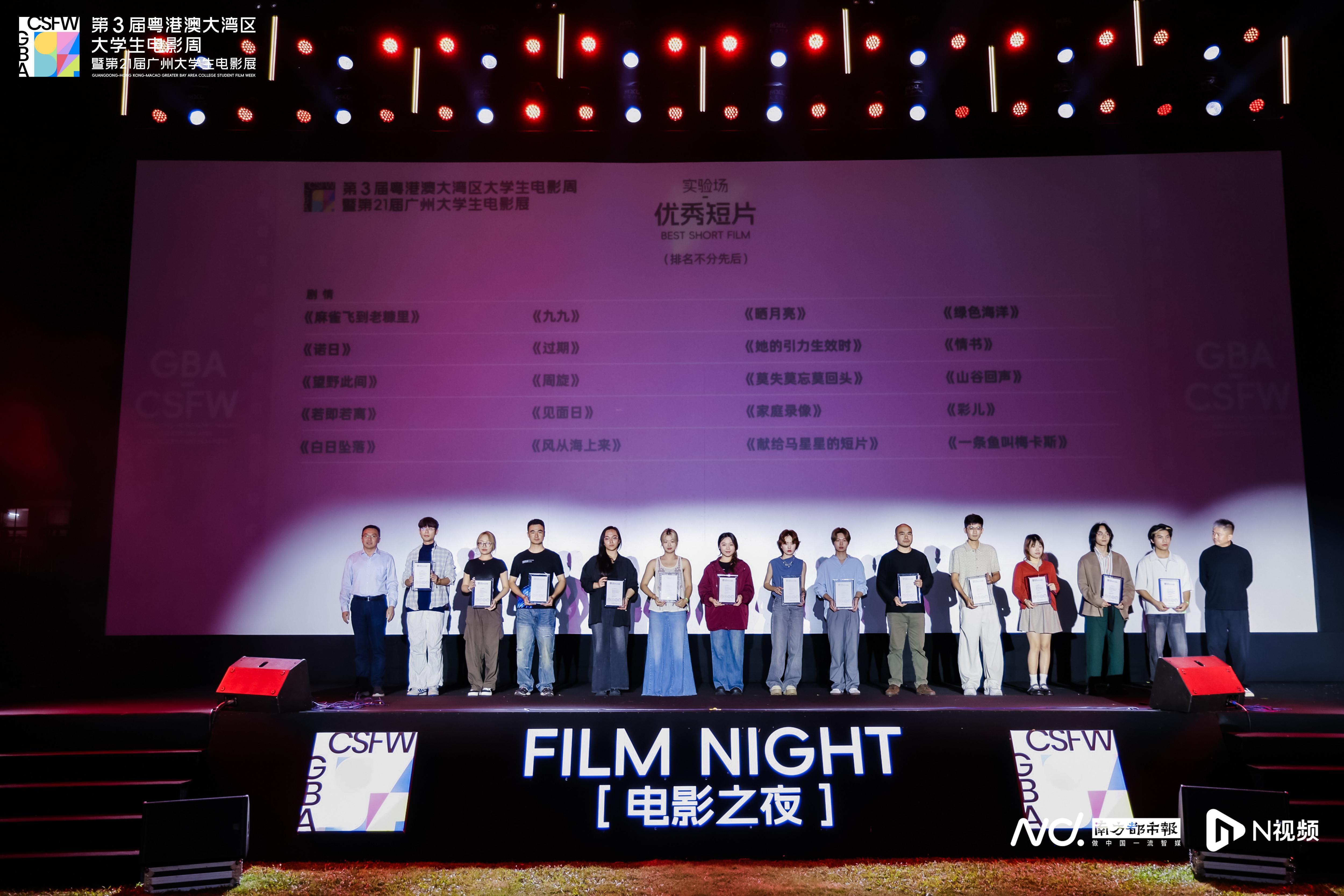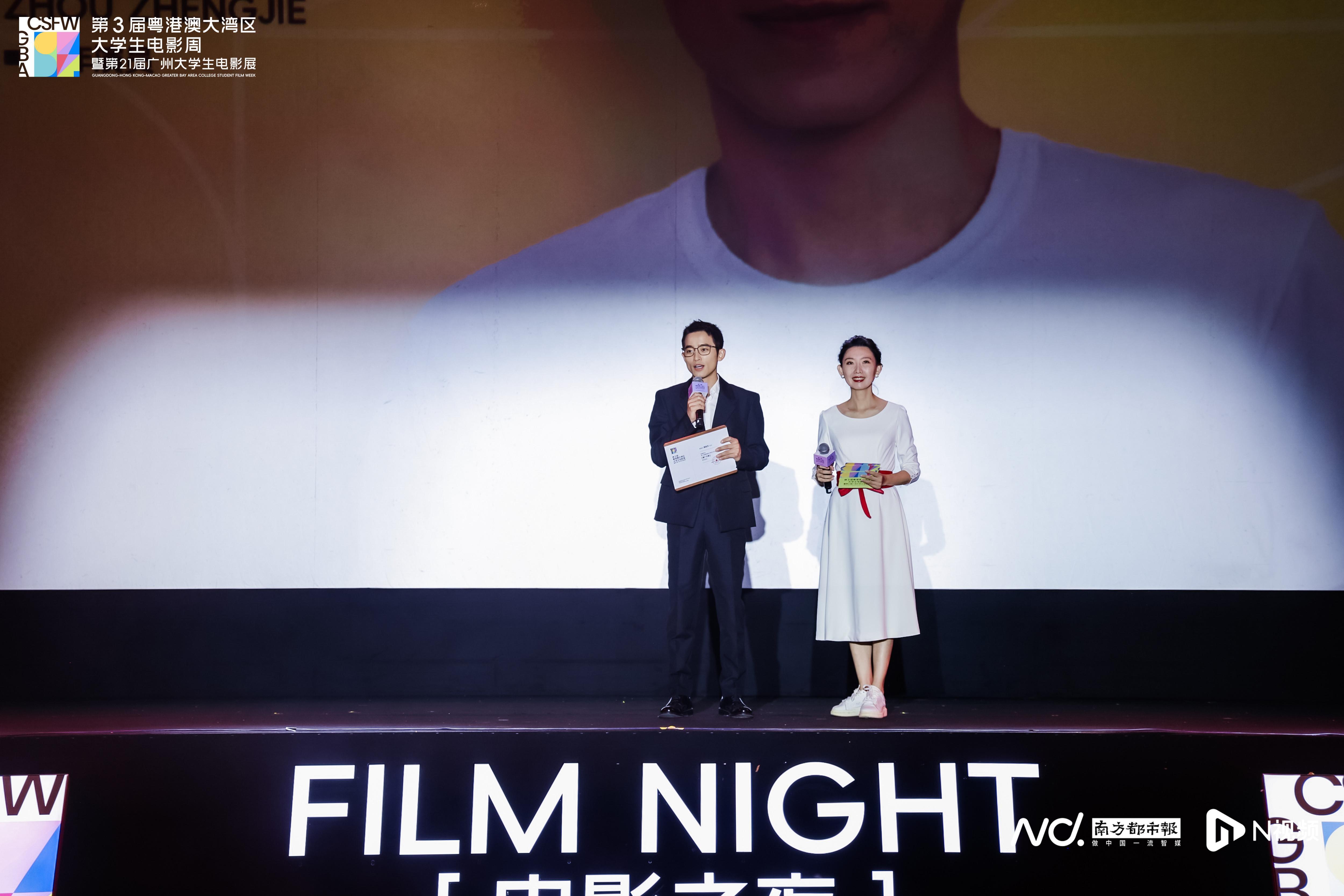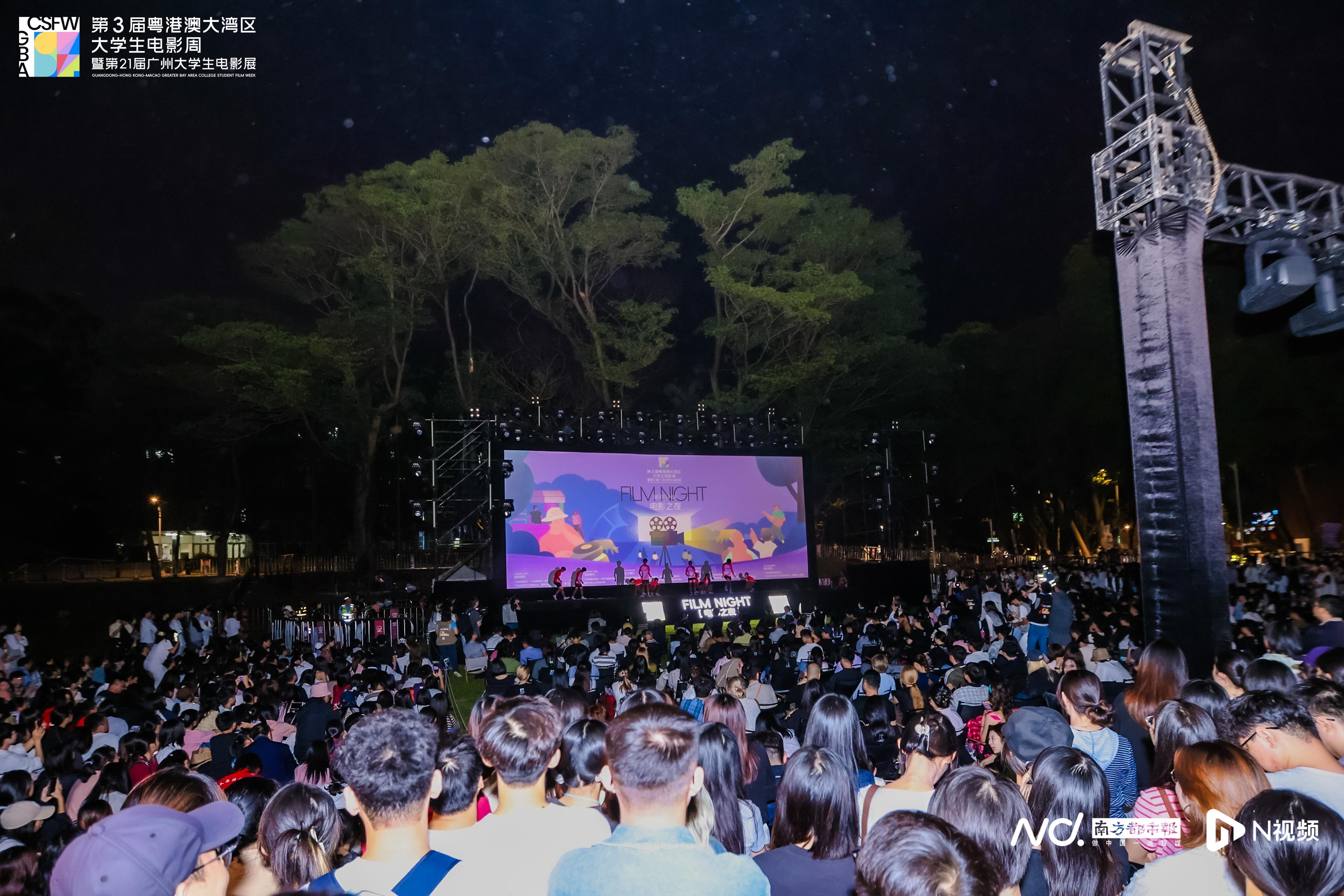 第3届粤港澳大湾区大学生电影周暨第21届广州大学生电影展“晚风FUN映”电影之夜现场。“电影+”点亮创意现场