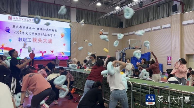 伴随着此起彼伏的笑声,无数个抱枕在半空来回穿梭,在两队的臂力与速度较量下,竞争之余收获了满满的快乐,这是近期深圳市宝安区文汇学校最让师生开心的画面之一,就发生在前不久刚结束的2025年校园体育节中。这是最受欢迎赛事之一“枕头大战”的“名场面”,激烈的画面被全校家长刷屏朋友圈,还有家长说:“忍不住多看几遍,感觉太解压了!”