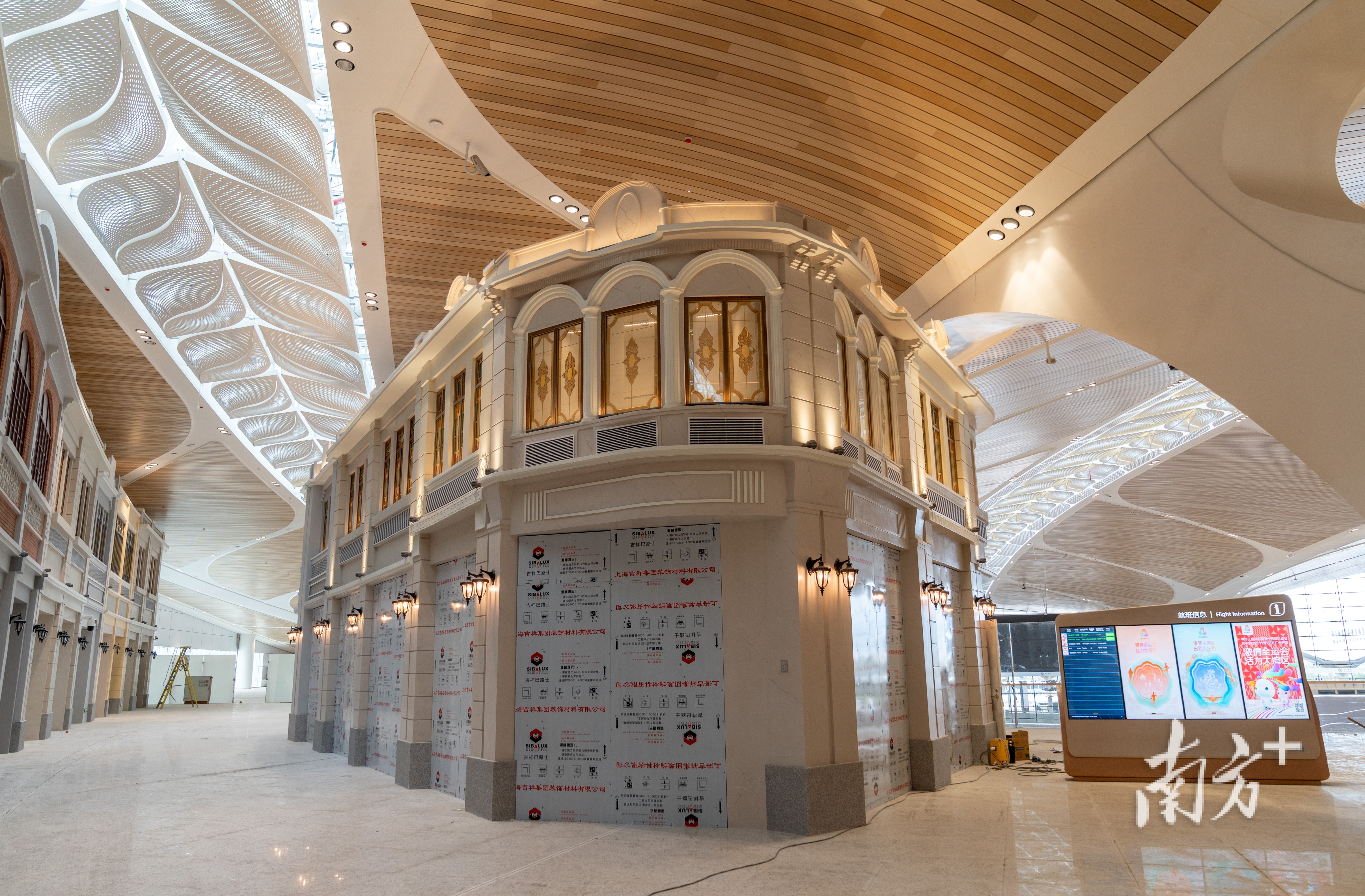 这里不仅是高颜值的航站楼,更是高品质、深内涵的文化目的地。全国首创全景航空观景平台和瞭望塔,既可俯瞰机场全景,又能近距离欣赏飞机起降;国内航站楼最大空侧原生态花园,以花园为载体,传递对生命的礼赞,实现岭南文化的国际传播;国内首个设立植物园的航站楼,汇聚多个大洲具有代表性的珍稀植物,东花园已成为华南植物园科普宣教点之一;国内首个建设古树公园的机场,结合征拆需要、古树迁移和公共区空间营造打造首个古树公园,20余株古树静静扎根,200余年树龄的榕树依旧枝繁叶茂,促进古树名木与城乡基础设施和谐共存,留住绿美广东乡愁记忆;航站楼西侧的特色商业街将岭南传统骑楼建筑形式与现代机场商业功能有机结合,为旅客打造一处充满人文温度、兼具文化体验与舒适消费的特色空间。