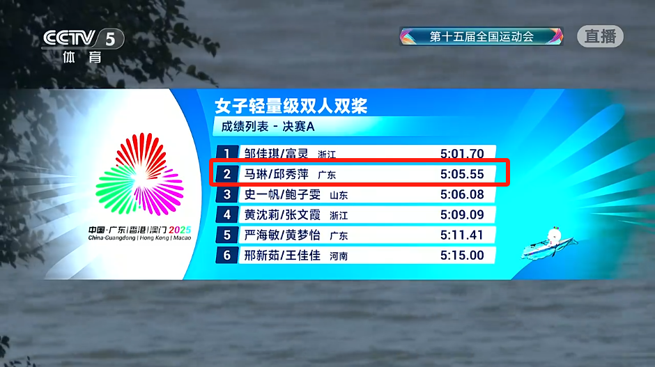 11月10日上午,第十五届全国运动会赛艇项目女子轻量级双人双桨A组决赛在广东国际划船中心落下帷幕。来自广东韶关南雄的赛艇名将邱秀萍与搭档马琳默契配合,劈波斩浪,以出色的发挥拿下该组第二名,收获一枚宝贵的银牌。