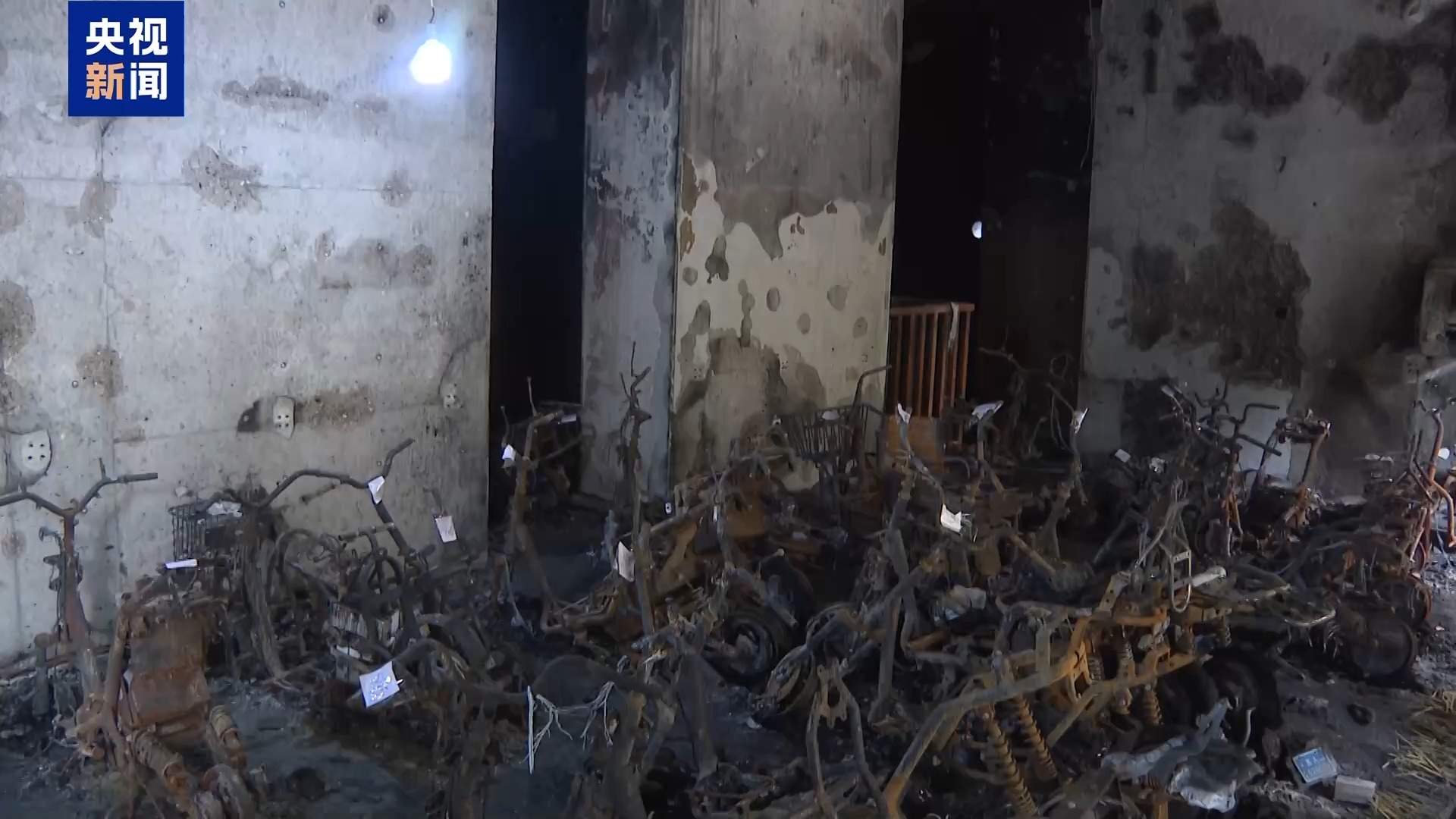 江苏省消防救援总队高级工程师崔蔚:通过我们的调查,主要是架空层停放的一辆电动自行车的锂电池热失控起火,引发了周边的电动车燃烧,大火和燃烧的大量烟气通过天井向上蔓延扩大。