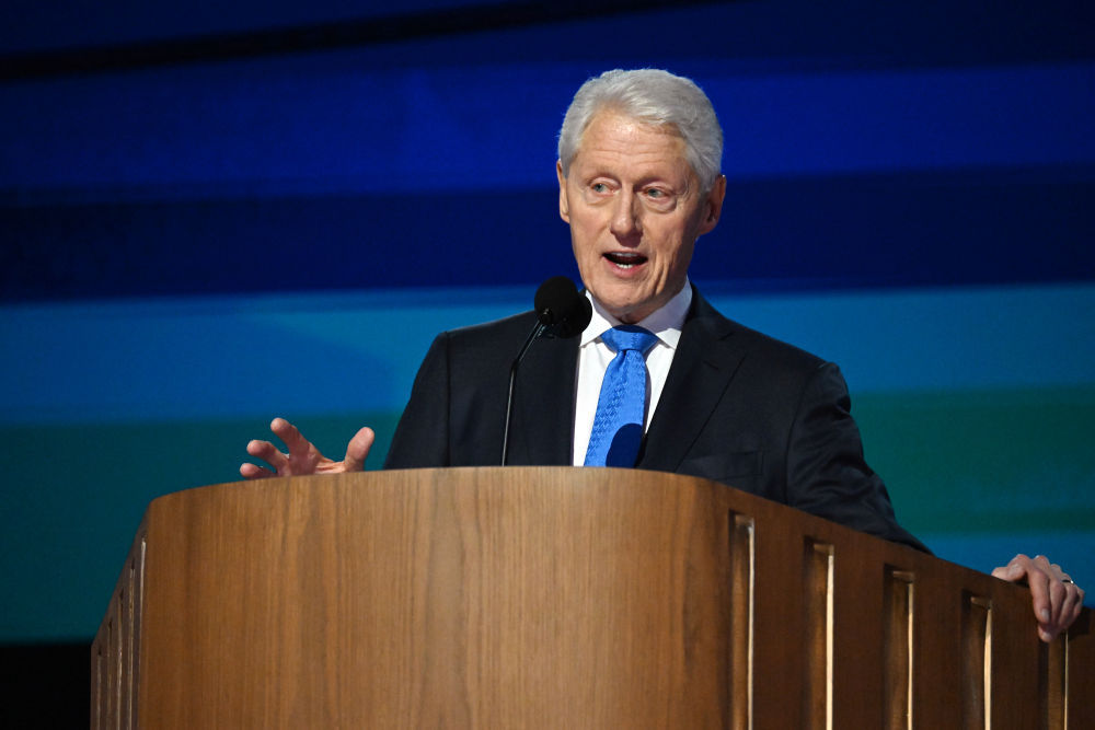 2024年8月21日,在美国芝加哥,美国前总统克林顿在民主党全国代表大会上发言。