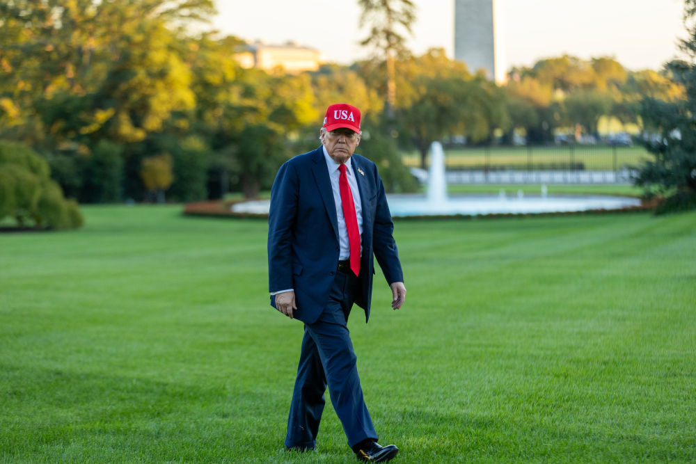 10月5日,在美国首都华盛顿,美国总统特朗普返回白宫。