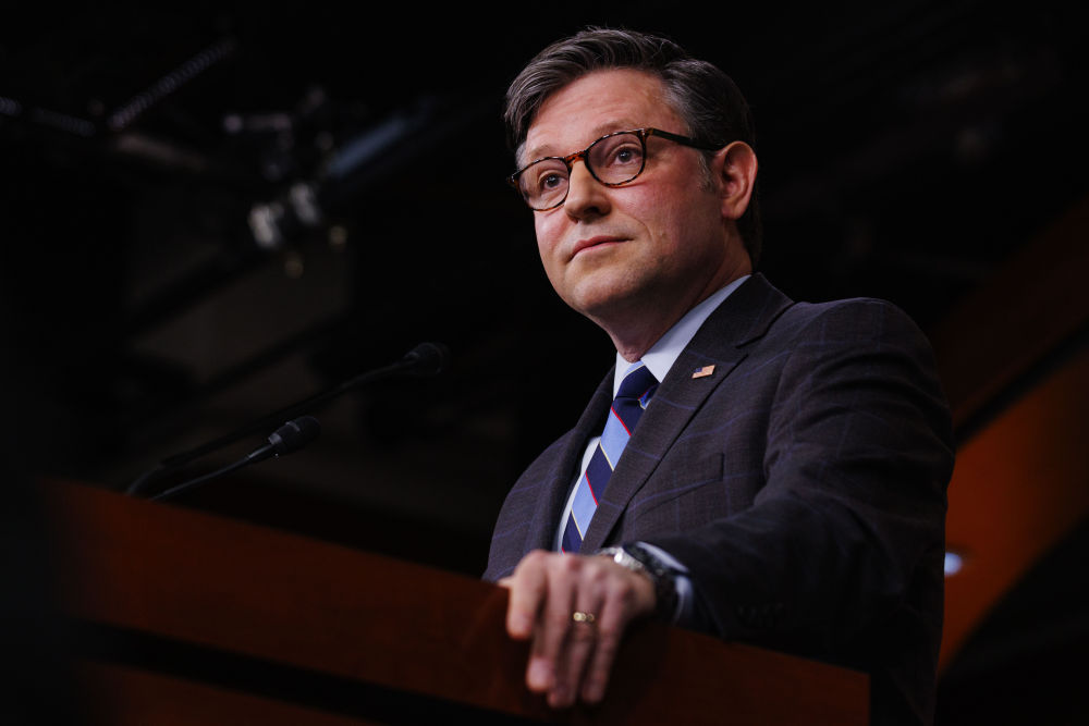 2024年2月6日,在美国华盛顿,美国国会众议院议长迈克·约翰逊举行记者会。