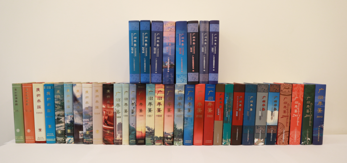 历年的广州年鉴。(受访者供图)