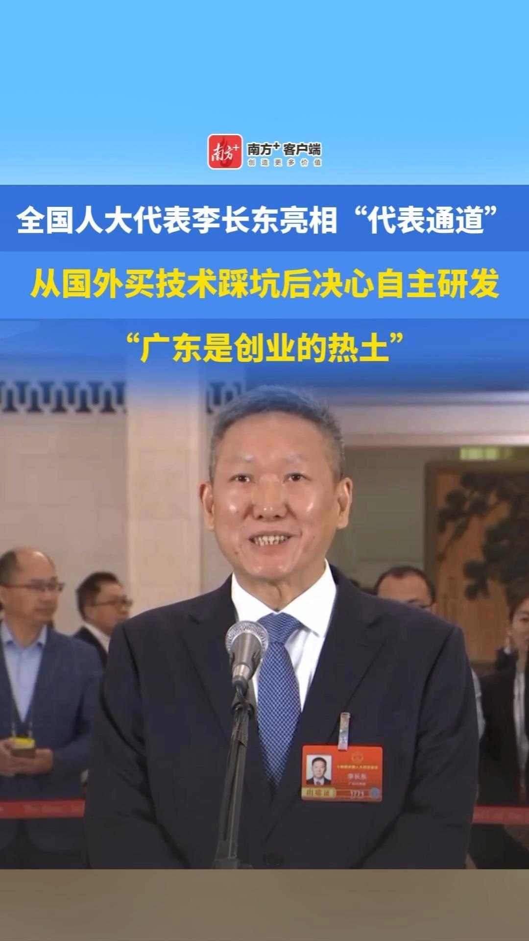 全国人大代表李长东亮相“代表通道”:从国外买技术踩坑后决心自主研发,广东是创业的热土