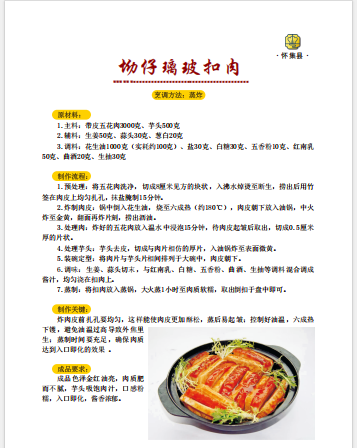 坳仔璃玻扣肉是怀集坳仔镇家喻户晓的宴席名菜,制作工艺严谨考究。