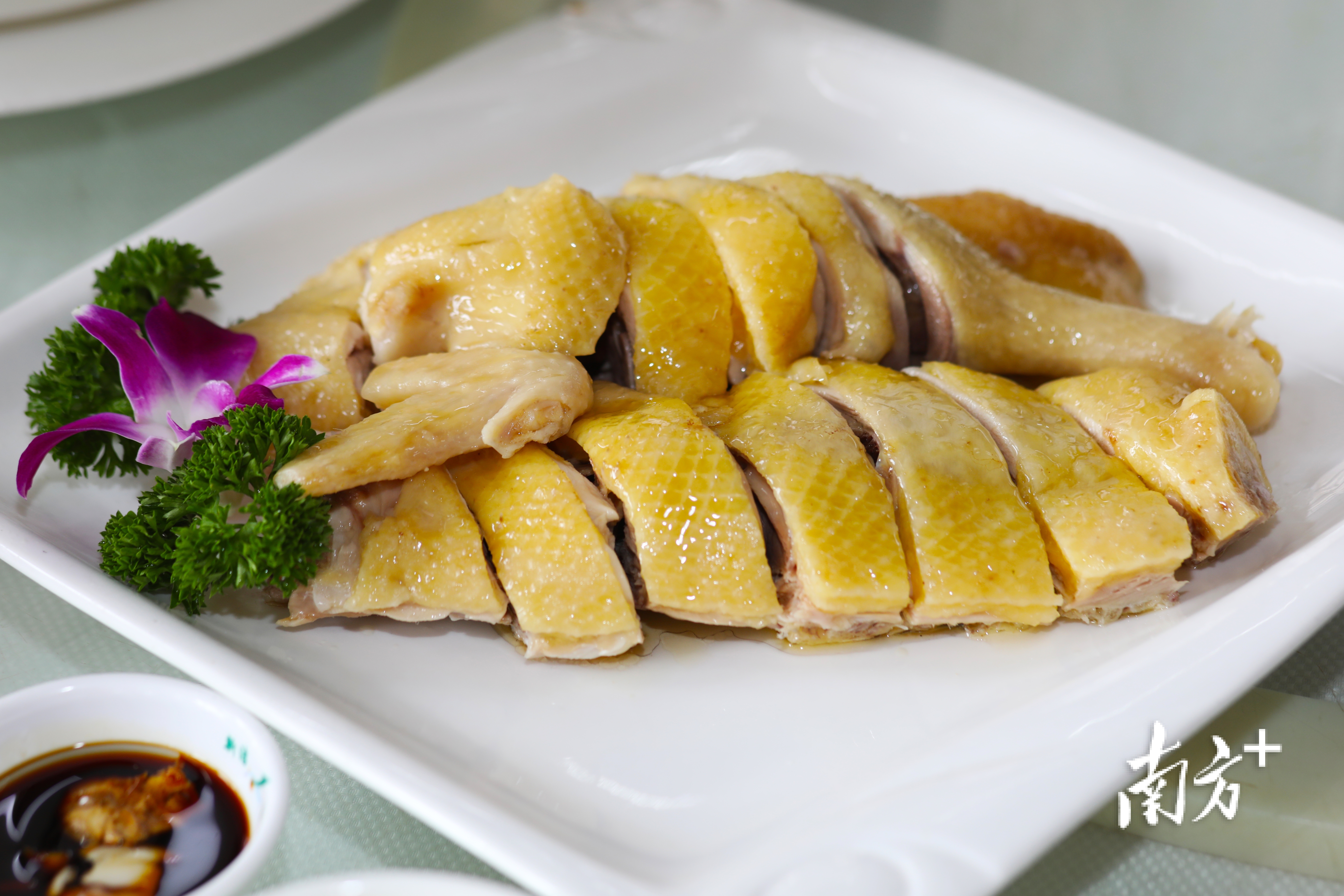 蘸料是白切鸡的灵魂,沙姜蒜子剁蓉搭配酱油和花生油,点睛之笔。“鸡有鸡味”,便是对白切鸡最大的褒奖。