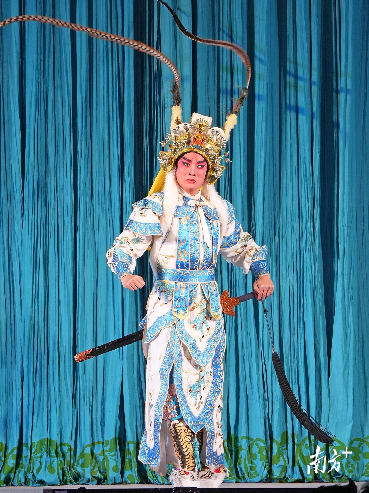 湛江吴川振文镇鱼笱埠,粤剧《唐明皇与杨贵妃》演出现场,图中为广州粤剧院青年演员刘华景扮演的安禄山。