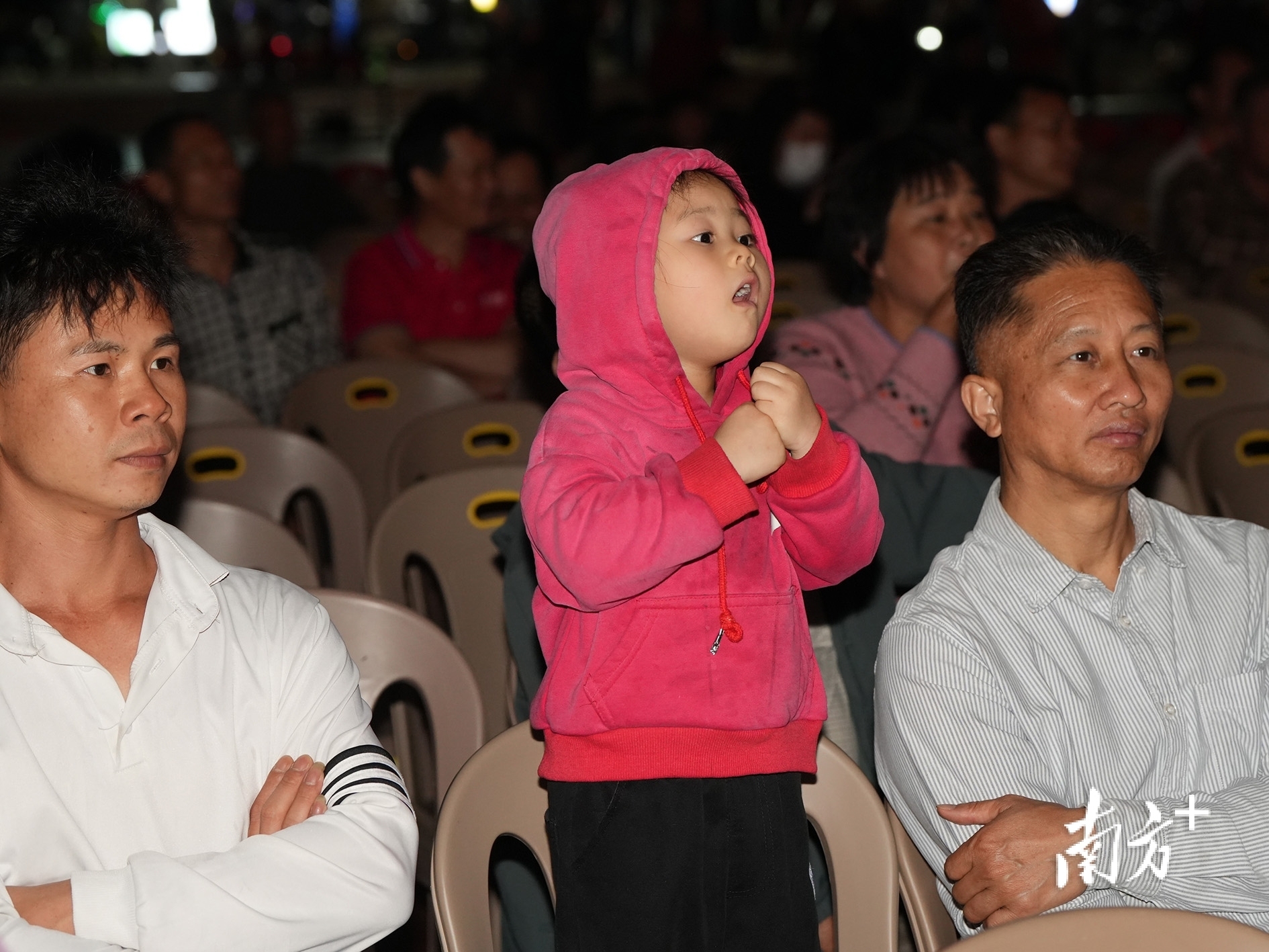 湛江吴川振文镇鱼笱埠,观众席上被粤剧表演吸引的当地小朋友。