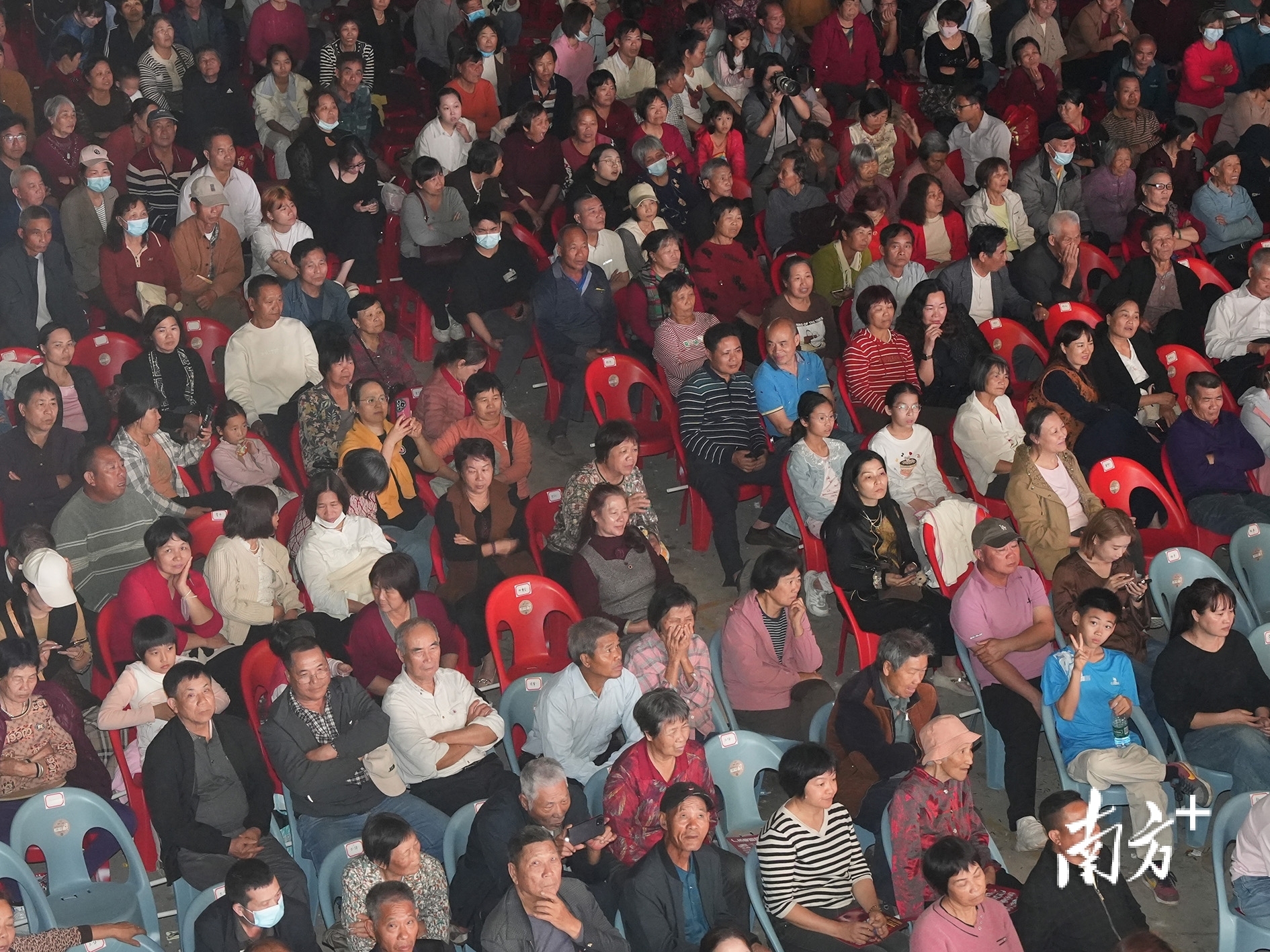 湛江吴川塘㙍镇田头屋村,欣赏粤剧《情僧偷到潇湘馆》的当地村民们。