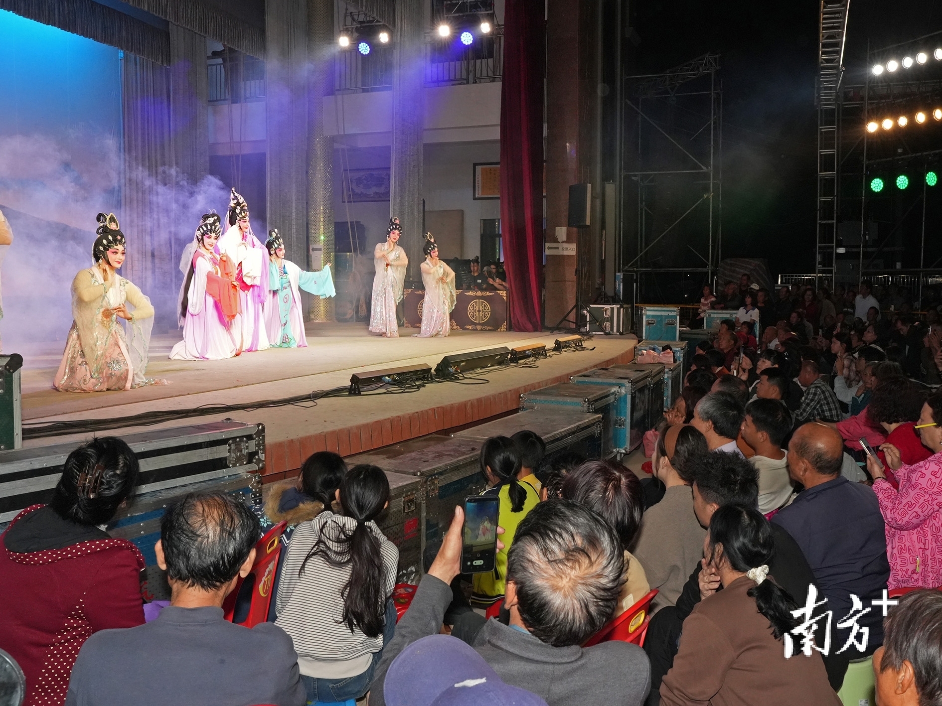 湛江吴川塘㙍镇塘下村,粤剧《鹊桥会》的演出现场。