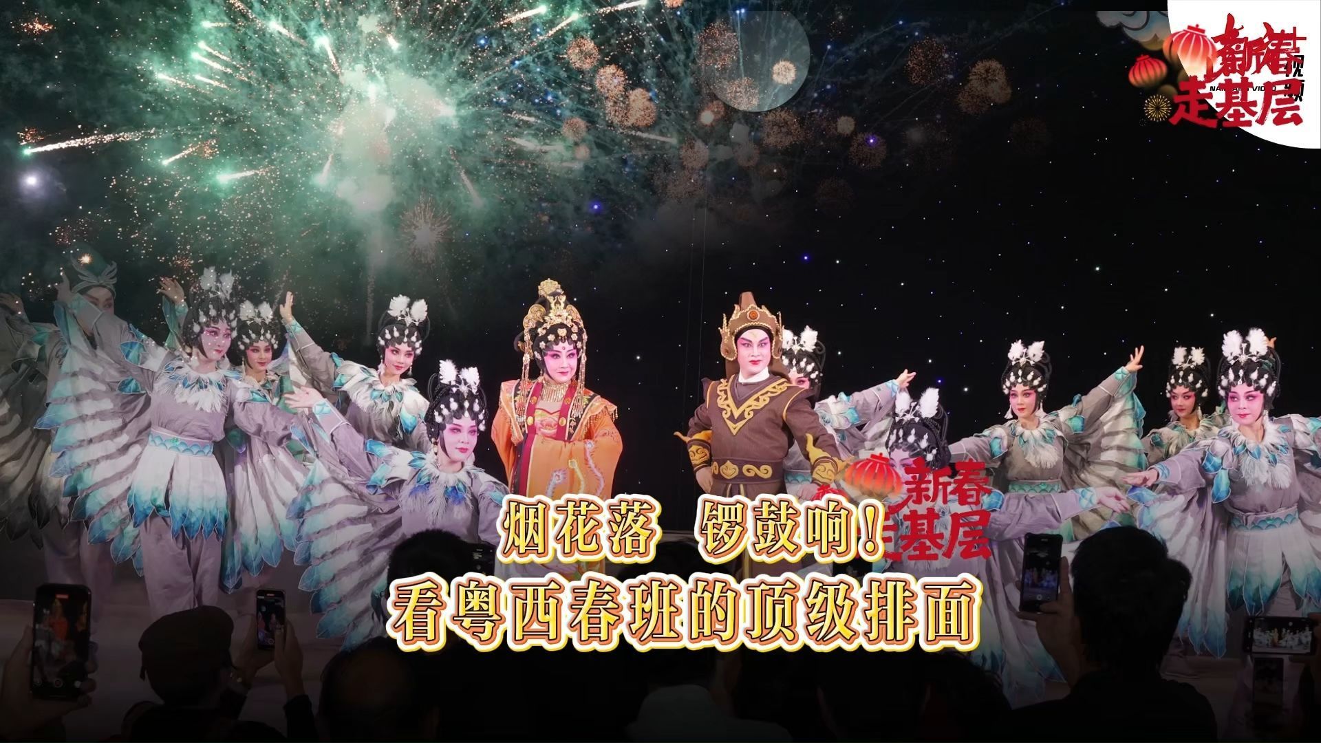 (年例烟花下的粤剧春班,时长共3分47秒)