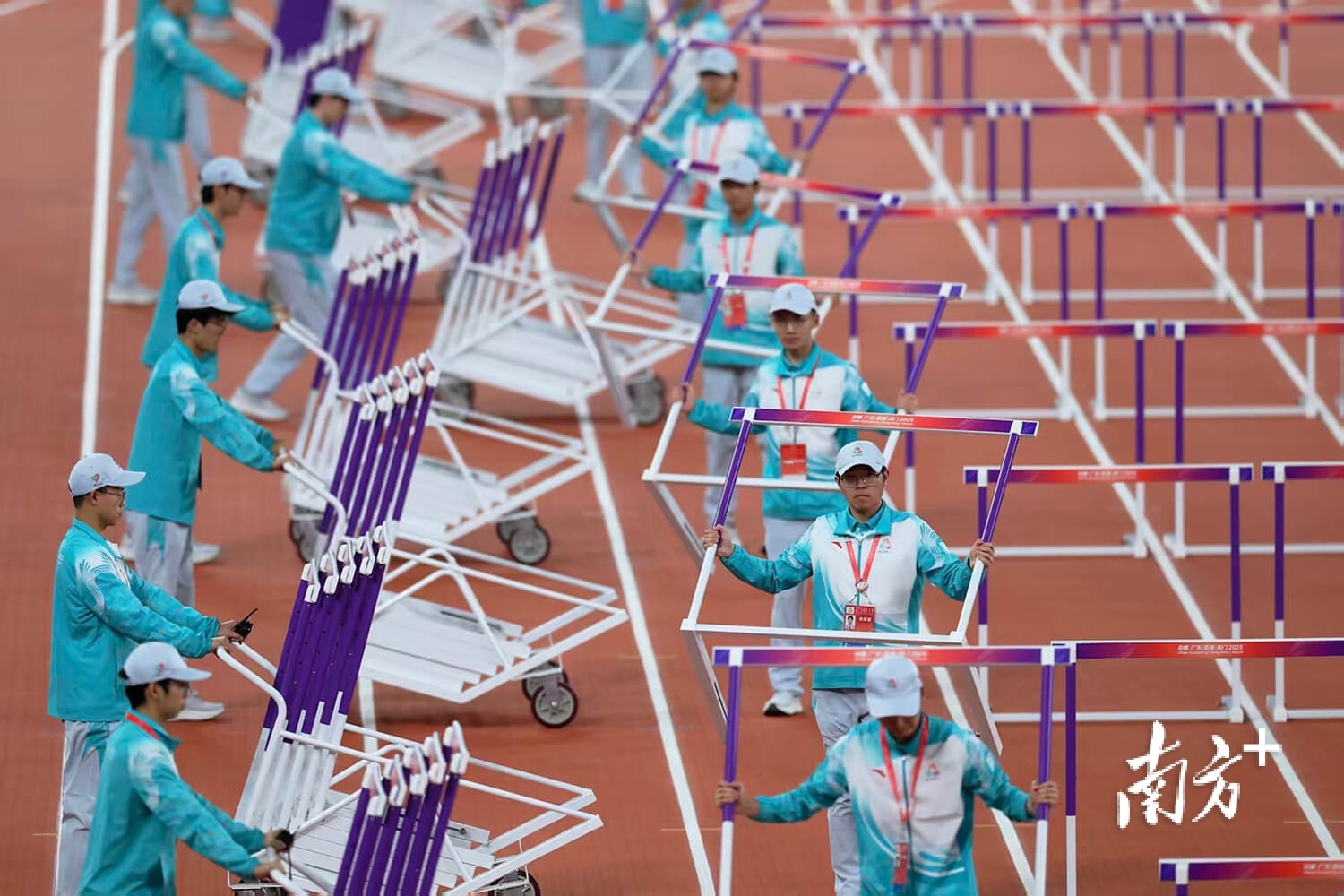 田径项目的转场工作则创造了令人惊叹的“湾区速度”。为了在开幕式后迅速转换场地,田径竞委会成立了转场工作专班,与开幕式团队深度融合。“我们按照‘分类分项、定岗定人、定时定量’原则,实施穿插作业、压茬推进,”负责田径及残特奥田径项目的竞委会副主任、天河区政协副主席曹利元介绍,“通过精准的协同联动与资源调度,我们最终较原计划提前约30小时完成全部转场,为赛事准时开赛赢得了宝贵时间。”这种高效,背后是清单化、台账式的精细管理,确保了每一项任务责任可溯、监督到位。