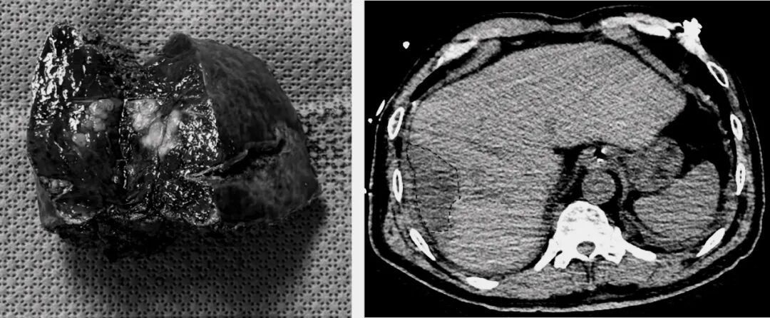 经过周密的准备,手术如期进行。术中运用了肝胆外科的特色技术——腹腔镜超声对肿瘤进行精准定位识别,并结合术中荧光染色实现肝段边界的清晰显影,从而辅助规划精准切除范围。在高清腹腔镜的放大视野下,蒋小峰教授操纵着精细的器械,在方寸之地稳健操作。借助这些先进技术的引导,他巧妙避开重要血管和胆管,如同进行一场精密的“肝脏雕刻”,最终完整切除肿瘤,并最大限度保留健康肝组织。手术过程出血极少,患者生命体征始终保持平稳。