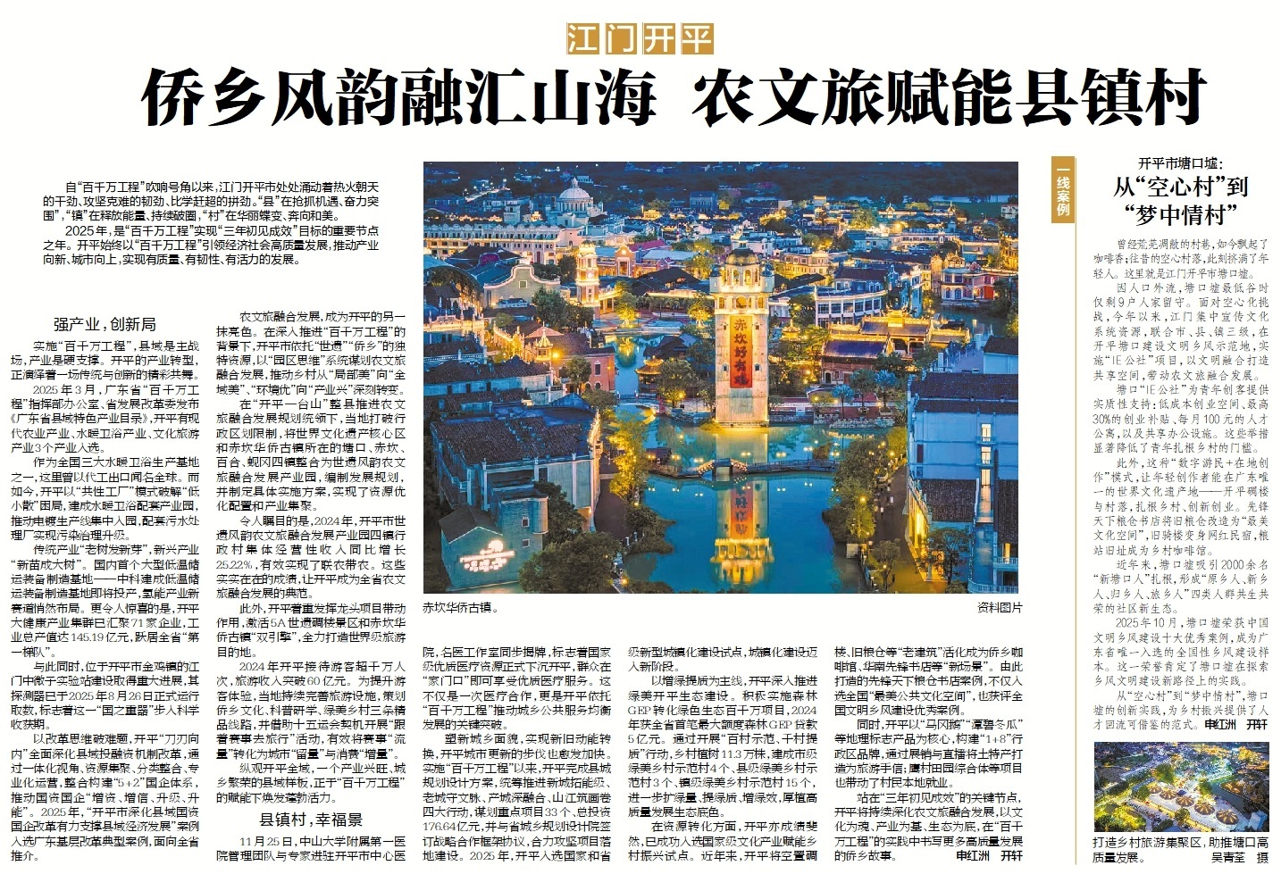 纵观开平全域,一个产业兴旺、城乡繁荣的县域样板,正于“百千万工程”的赋能下焕发蓬勃活力。