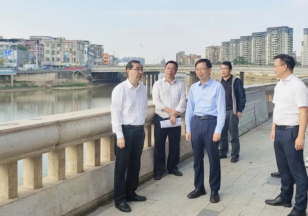 当天下午,市调研组一行先后前往寒溪河碧道(房地产大厦段)、寒溪河(江心洲),详细了解常平寒溪河“一河两岸”改造工程及绿美建设相关工作情况。据悉,常平于2020年开始实施寒溪河“一河两岸”改造工程,该工程作为市镇两级推动实现还河于民的重大民生工程,主要围绕防洪排涝、清淤截污、道路建设、景观提升等方面开展施工,通过系统治理水污染、高标准完善水利设施、规范化建设两岸道路、美化沿岸景观、完善公共空间设施等举措,致力打造成为河流生态修复和景观提升标杆。