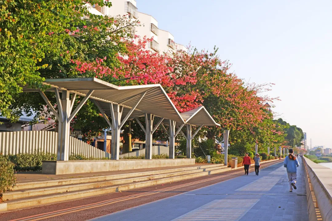此外,该工程聚焦绿美生态建设,推进绿道、碧道融合串联,持续提升沿岸道路绿化品质,实现慢行绿道系统全线贯通,助力绿美东莞生态建设。截至目前,鹤翔园、鹤行园、鹤知园、鹤鸣园、青鹤湾驿站、还珠沥段、袁山贝段、岗梓桥以北段西岸等已顺利完工并开放使用,形成了以各景观点为中心的“小循环”和围绕“一河两岸”工程的“大循环”,为市民群众增添了多处高品质休闲游憩空间。