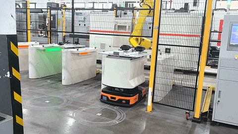 车间内,机械臂在流水线上精准作业,无人配送车在车间中有序穿梭,智能系统实时监控设备参数并自主调节生产节奏,工厂可以在“黑灯”状态下持续运行。