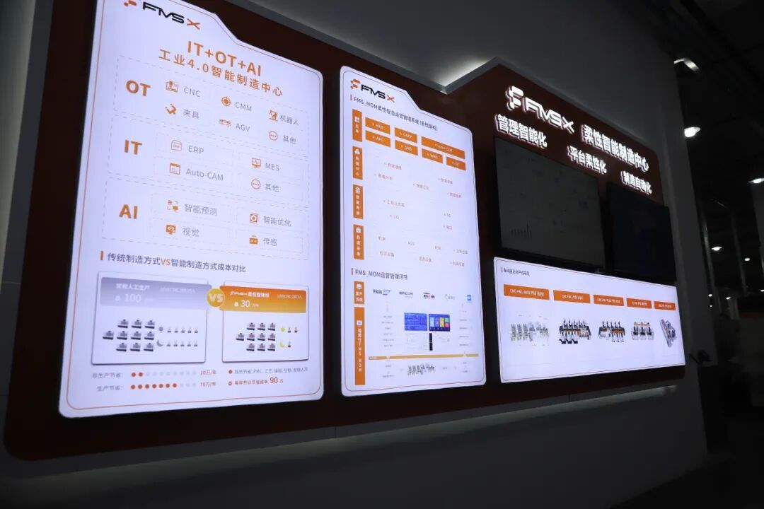 如何在不牺牲灵活性的前提下,实现规模化、标准化、智能化的生产?“FMS_MOM”系统给出了突破性的解决方案。福美仕相关负责人介绍,该系统通过实时采集设备状态、生产进度、质量数据等信息,在数字看板上动态呈现车间全貌。管理者可随时随地掌握生产实况,实现基于数据的精准决策。同时,该系统还深度融合智能编程、智能检调与零点定位技术,实现夹具设计标准模块化,有效解决了多品种小批量生产对柔性工装的需求,切实解决了精密加工中的调机难、换产慢、精度保证等核心工艺痛点。