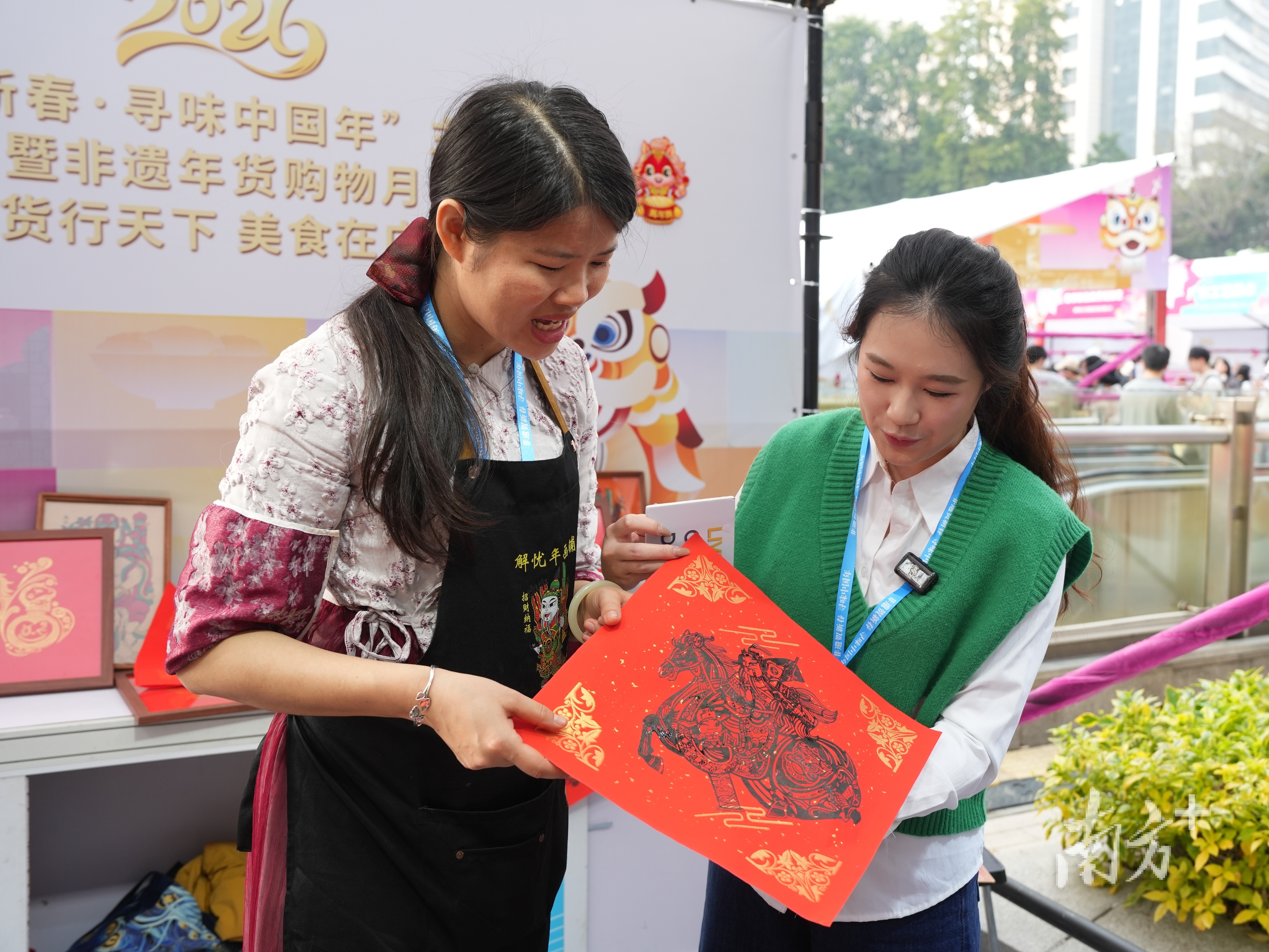 皇上皇融合乒乓文化的双鱼联名礼盒、广药集团的植物饮料与陈皮零食、广州酒家的薄盐系列腊味健康食品、香云纱企业的新品华服,以及押花《福满马年》、通草画《马上来财》、广彩书签《马年好运》等马年新品……现场“上新”的多款好物,充分彰显非遗焕新的青春活力。