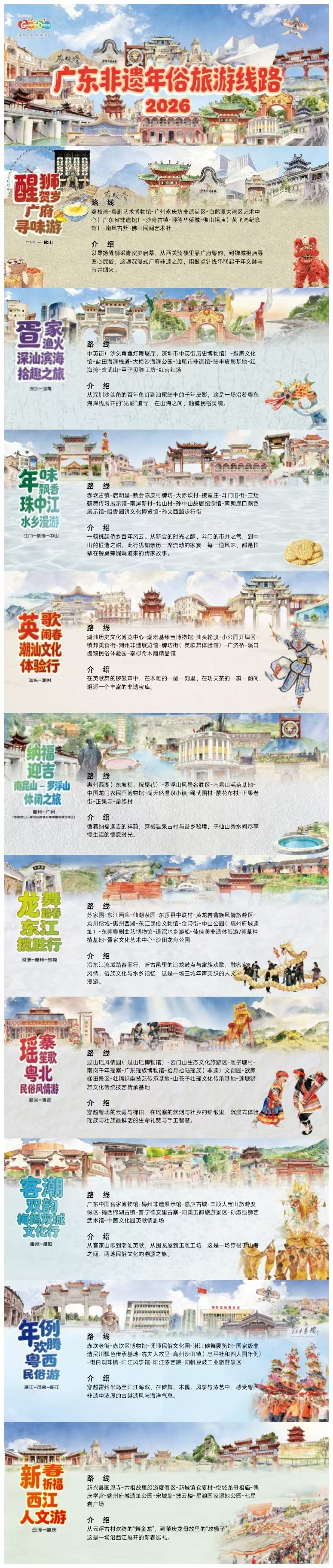 为推动非遗与旅游融合发展,本次活动首度发布广东非遗年俗旅游线路。十条线路包括↓↓