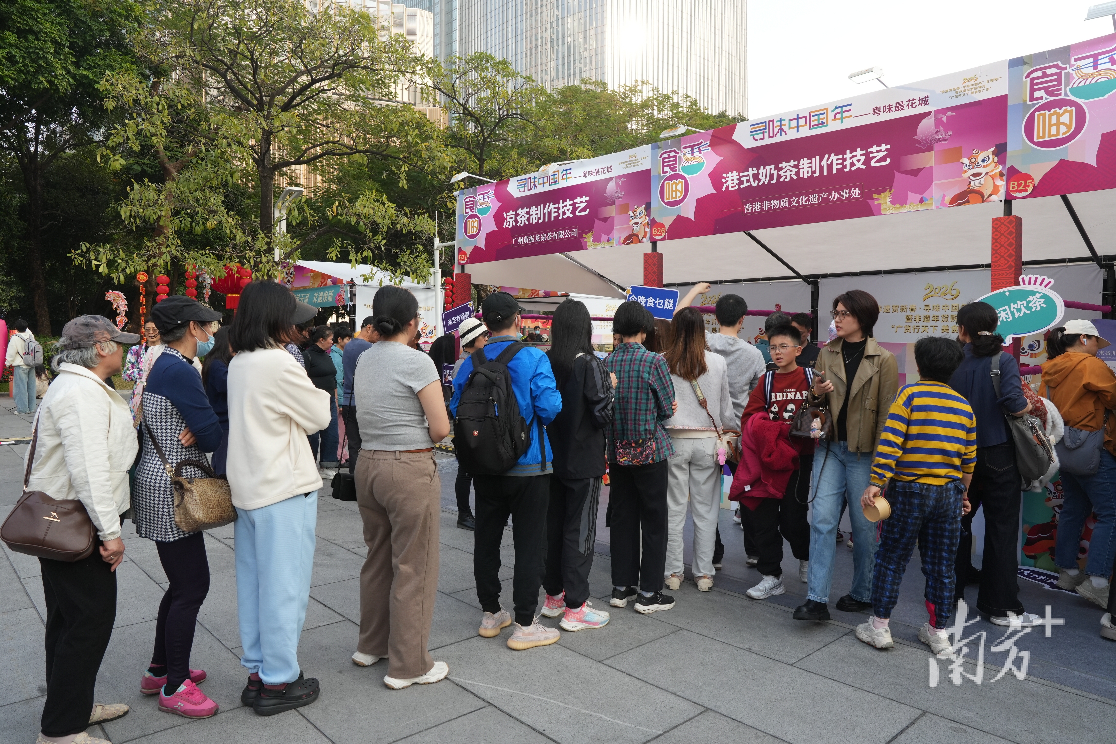 “寻味中国年”展区汇聚67个各具特色的非遗美食项目,重庆荣昌卤白鹅、浙江衢州邵永丰麻饼等,与广东当地年俗小吃联动演绎“舌尖上的中国年”。“粤味最花城”板块汇聚广府、潮汕、客家三种岭南风味,彰显“食在广东”的文化魅力。