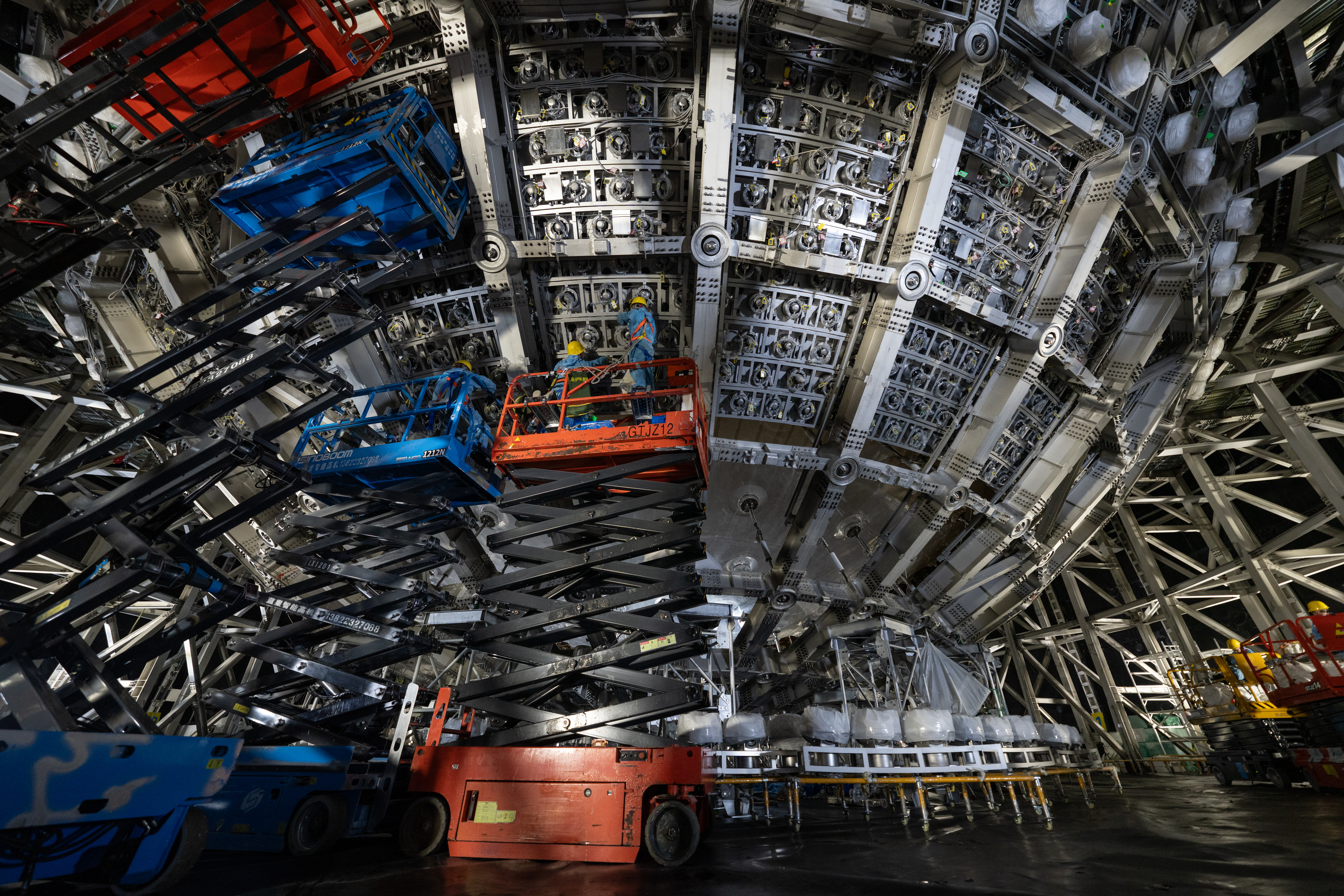 2024年10月21日,工人在安装中心探测器上的光电倍增管 南方+ 张梓望 许舒智 拍摄