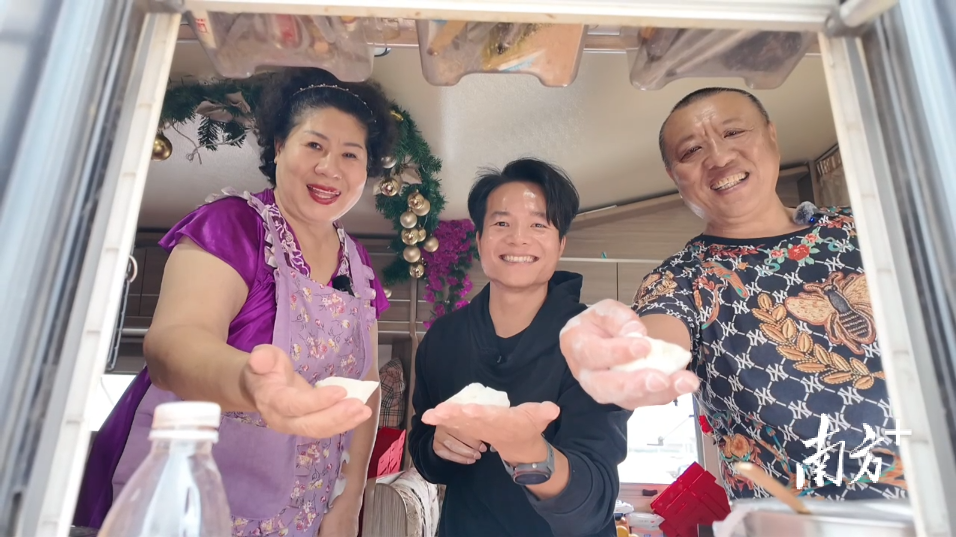 房车里,韩梅大姐掀开门帘,热气裹着面香扑了满脸。车内空间不大,一张双人床,一张水吧台、一条窄过道,餐桌上摆放的“福”字红得发亮。从哈尔滨来的温福鑫大哥和韩梅大姐,就这样在柏桥服务区已住了半个多月。